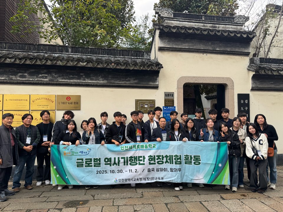 인천광역시교육청 인천세계로배움학교 글로벌 역사기행단 중국 현장체험활동 성료 [PEDIEN] 인천광역시교육청은 인천세계로배움학교의 ‘2025 글로벌 역사기행단’이 3박 4일간의 중국 상하이 및 항저우 현장체험활동을 성공적으로 마쳤다고 밝혔다.이번 역사기행은 ‘대한민국임시정부와 인천’이라는 주제로 진행되었으며, 인천 지역 고등학생 20명과 인솔 교사 등 총 28명이 참여했다. 학생들은 만오 홍진 선생의 발자취를 따라 상하이와 항저우에 위치한 대한민국임시정부 청사와 유적지를 방문, 독립운동의 역사적 의미를 되새기는 시간을 가졌다.학생들은 항저우에서 조별 활동을 통해 임시정부 관련 유적지를 탐방하고, 마지막 날에는 광복군 태극기를 직접 제작하며 선열들의 숭고한 희생정신을 기렸다.뿐만 아니라 상하이 사범대학을 방문하고 항저우 시민들과 인터뷰를 진행하며 동아시아 평화와 상호 이해의 중요성을 깨닫는 뜻깊은 교류 활동도 펼쳤다.이번 기행에 참여한 한 학생은 현장에서 독립운동가들의 정신을 직접 느끼며 인천과 임시정부의 역사적 연관성을 배울 수 있어 매우 의미 있는 시간이었다고 소감을 밝혔다.인천시교육청 관계자는 이번 역사기행을 통해 학생들이 선열들의 독립정신을 기리고 인천의 역사적 자긍심을 높이는 계기가 되었기를 바란다며 앞으로도 학생들이 글로벌 시민으로 성장할 수 있도록 적극적으로 지원할 계획이라고 밝혔다.한편, 역사기행에 참여한 학생들은 귀국 후 활동 내용을 담은 도서를 제작하고 성과 공유회를 개최하여 배움의 과정을 이어나갈 예정이다. -