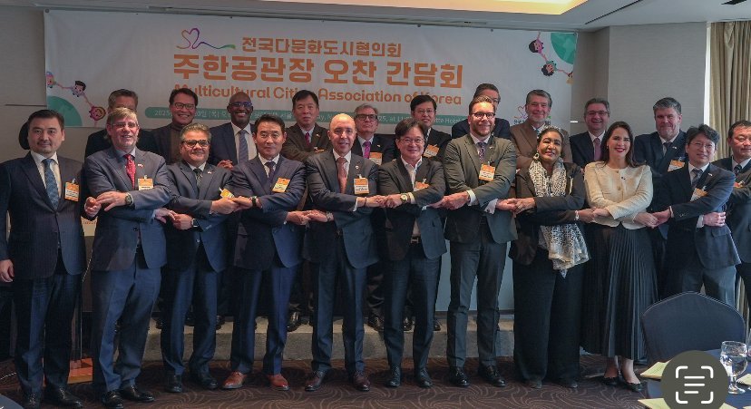 다문화도시협의회 [PEDIEN] 전국다문화도시협의회가 지난 20일 롯데호텔서울에서 주한 공관장을 초청해 오찬 간담회를 개최했다.이번 간담회는 국내 다문화도시와 주한 공관장 간의 상호문화 교류 및 협력 강화를 위해 지난해에 이어 두 번째로 마련된 자리로, 전국다문화도시협의회 6개 회원도시 △김포시 △포천시 △광주시 △금천구 △남양주시 △ 아산시의 단체장 및 부단체장과 △주한대사협의회 회장국 모로코 △중국 △캐나다 △베트남 △우즈베키스탄 △카자흐스탄 등 15개국 공관장이 참석했다.김병수 전국다문화도시협의회 회장은 환영사에서 “최근 지방정부는 국제 외교의 주체로서 각국과의 교류를 확대하고 있다”며 “전국다문화도시협의회는 앞으로도 공관장들과 긴밀히 협력해 다문화 도시가 지향하는 포용성과 상호이해의 가치를 더욱 확산시키겠다”고 말했다.주한대사협의회 회장인 샤픽 라샤디 주한모로코 대사는 축사를 통해 “한국의 지방도시들이 세계와 직접 소통하며 상호문화적 가치를 실천하는 모습이 인상적”이라며 “이러한 협력은 양국 관계뿐 아니라 글로벌 연대에도 긍정적 영향을 미칠 것”이라고 밝혔다.이날 참석자들은 회원도시의 외국인주민 지원 정책과 지역별 현황을 공유하고, 캐나다·이라크·멕시코 등 6개국 대사관이 제공한 홍보 영상을 시청하며 각국의 문화·정책을 이해하는 시간을 가졌다. 전국다문화도시협의회는 이번 오찬을 포함한 지속적인 교류 경험을 바탕으로, 지방정부와 외교공관이 함께 만드는 상호문화의 장을 꾸준히 확장해 나갈 예정이다.전국다문화도시협의회가 지난 20일 롯데호텔서울에서 주한 공관장을 초청해 오찬 간담회를 개최했다. -