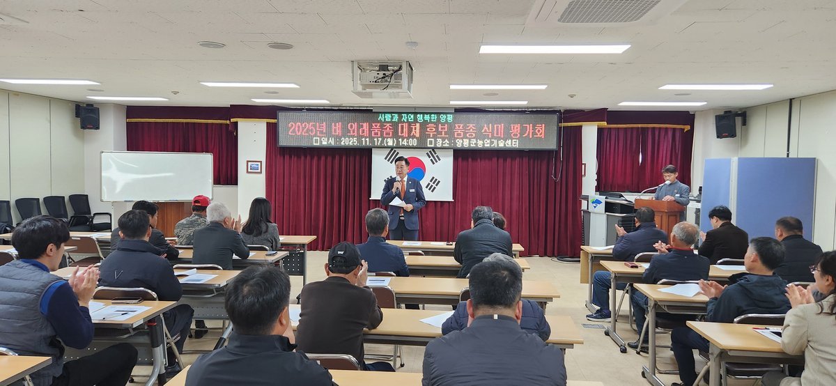 벼_품종_선발_식미_평가회(사진제공=양평군) [PEDIEN] 양평군이 밥맛 좋은 쌀 품종 개발에 나섰다. 지역 대표 품종인 추청벼를 대체할 새로운 품종을 찾기 위한 식미 평가회를 개최하며 쌀 품질 향상에 박차를 가한다.이번 평가회는 양평군 친환경농업교육관에서 열렸으며, 벼 생산자, 농업인 단체, 가공·유통 관계자 등 40여 명이 참석했다. 이들은 새로운 품종의 밥맛을 직접 평가하고, 추청벼를 대체할 가능성을 꼼꼼히 따졌다.평가 대상은 지난 9월 현장평가회에서 높은 점수를 받은 중생종 4개 품종과 참드림벼다. 참석자들은 밥알 모양, 찰기, 밥맛 등을 종합적으로 평가했다. 최종 결과는 현장 생육 평가, 백미 품위 분석, 밥맛 관능 평가를 합산하여 결정된다.양평군은 이번 평가 결과를 바탕으로 추청벼를 대체할 유망한 신품종을 선발하고, 보급종 생산 및 공급을 확대할 계획이다. 또한, 품종별 특성과 식미 비교 자료를 농가 교육과 품종 추천에 활용하여 농가의 선택을 돕는다.주성혜 농업기술센터 소장은 “기후 변화에 대응하면서도 밥맛과 품질이 뛰어난 신품종을 적극적으로 발굴하여 양평쌀의 브랜드 가치를 높이겠다”고 밝혔다. 덧붙여 “농가들이 안정적으로 재배할 수 있도록 벼 자율교환 채종포 운영 등 품종 보급 기반을 지속적으로 강화하겠다”고 말했다.이번 식미 평가회를 통해 양평군은 지역에 적합한 우수 벼 품종을 확대 보급하고 외래 품종 의존도를 줄여 쌀 경쟁력을 강화할 방침이다. 이를 통해 양평 쌀 산업의 지속적인 성장을 기대하고 있다. -