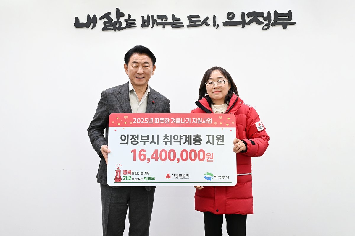 복지정책과 의정부시 경기북부 사랑의열매 따뜻한 겨울나기 성금 1 640만 원 전달 [PEDIEN] 의정부시는 12월 18일 경기사회복지공동모금회 북부사업본부가 관내 저소득층의 따뜻한 겨울나기를 위해 성금 1천640만 원을 기부했다고 밝혔다.권인욱 회장은 “생활이 어려운 이웃들이 추운 계절만큼은 걱정 없이 지냈으면 하는 마음으로 기부를 결심했다”며 “작은 나눔이 누군가의 삶을 바꾸고 지역을 따뜻하게 할 수 있다고 생각한다. 앞으로도 취약계층에 온기를 전할 수 있도록 기부를 이어가겠다”고 전했다.김동근 시장은 “꾸준한 나눔 활동으로 따뜻한 마음을 전해 준 경기북부 사랑의열매에 감사드린다”며 “이번 지원금이 올겨울 164가구에 큰 힘이 되고, 특히 난방비 부담으로 어려움을 겪는 이들에게 실질적인 도움이 되길 기대한다”고 말했다.시는 2025년 11월 5일부터 2026년 2월 12일까지 ‘100일간 사랑릴레이 배턴 잇기’ 모금 운동을 진행하고 있으며, 모금된 현금과 현물은 공동모금회와 연계해 관내 저소득층에 지원하고 있다. -