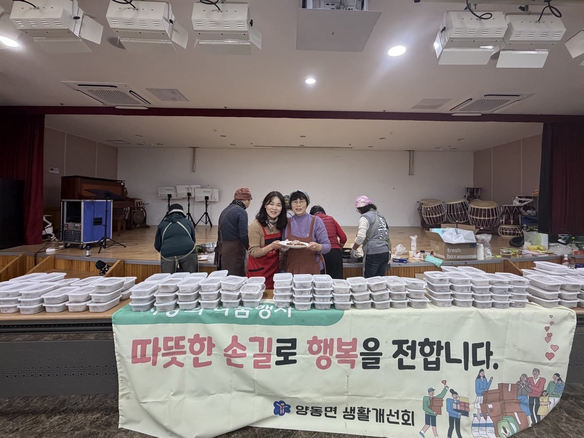 양동면 생활개선회, 연말 맞아 어려운 이웃에 음식 나눔 실천 (양평군 제공) [PEDIEN] 양평군 양동면 생활개선회가 지난 12일, 양동면 자치센터에서 어려운 이웃을 위한 떡갈비 나눔 행사를 열었다.생활개선회는 매년 연말, 지역 사회의 소외된 이웃을 위해 나눔 활동을 꾸준히 이어오고 있다. 올해는 특별히 각 마을에서 추천받은 어르신 100가구에 찰밥과 떡갈비를 전달하며 따뜻한 마음을 전했다.이날 행사에는 생활개선회 회원들이 직접 참여하여 음식 준비부터 포장, 그리고 각 가정에 전달하는 모든 과정을 맡았다. 회원들은 추운 날씨에도 불구하고 정성껏 준비한 음식을 전달하며 이웃사랑을 몸소 실천했다.특히 연말을 맞아 외로움을 느낄 수 있는 어르신들에게 따뜻한 온정을 나누고자 하는 회원들의 마음이 행사의 의미를 더욱 깊게 했다. 생활개선회 회장은 작은 나눔이지만 어르신들에게 따뜻한 위로가 되기를 바란다는 소감을 밝혔다.정창업 양동면장은 매년 어려운 이웃을 위해 나눔을 실천하는 생활개선회 회원들에게 감사의 뜻을 전하며, 이러한 따뜻한 공동체 문화가 양동면 전체로 확산되기를 기대한다고 말했다.양동면 생활개선회는 앞으로도 지역 내 소외된 이웃을 위한 다양한 봉사활동을 통해 따뜻한 양동을 만들어나갈 계획이다. -
