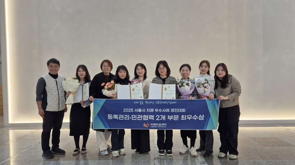 [PEDIEN] 성북구 치매안심센터가 서울특별시광역치매센터 주관 '2025년 치매안심센터 우수사례 경진대회'에서 2관왕을 차지했다.등록·사례관리 사업과 민관협력 특화사업 두 부문에서 최우수상을 수상하는 쾌거를 거뒀다.이번 경진대회는 서울시 25개 자치구 치매안심센터의 우수 사례를 공유하고 발전시키기 위해 마련됐다. 등록·사례관리, 조기검진, 기억친구 리더, 민관협력 특화사업, 인식개선 등 5개 분야에서 경쟁이 펼쳐졌다.성북구치매안심센터는 '다시, 봄 초로기 치매 사회 통합형 지원 프로젝트'와 '기억을 지키는 성북, 민·관이 함께한 4 치유 프로젝트'를 통해 각각 최우수상을 받았다.특히 초로기 치매 환자와 경도인지장애 진단자를 위한 맞춤형 지원이 효과를 거두고 있다는 평가다. 지역사회 자원 연계를 통한 '성북구형 지역 돌봄 협력 모델'의 우수성도 인정받았다.이번 수상은 성북구가 단일 기관 중심의 치매 관리에서 벗어나 지역사회와 협력하는 새로운 모델을 제시했다는 점에서 의미가 깊다.성북구는 이번 수상을 계기로 대상자 맞춤형 프로그램을 확대하고, 지속 가능한 치매 예방·관리 체계를 구축하는 데 박차를 가할 계획이다.구 관계자는 이번 성과가 대상자의 특성과 삶을 반영한 맞춤형 지원 덕분이라고 밝혔다. 앞으로도 지역사회와의 협력을 더욱 강화하여 삶 중심의 치매 돌봄을 실현하겠다고 강조했다.성북구치매안심센터는 앞으로도 지역 주민들의 치매 예방과 관리를 위해 최선을 다할 예정이다.