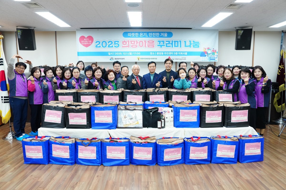 성북구, 석관동·종암동 취약계층 겨울나기 지원 나눔 행사 진행 (성북구 제공) [PEDIEN] 성북구가 석관동과 종암동의 어려운 이웃들이 따뜻하게 겨울을 보낼 수 있도록 지역사회보장협의체와 손을 잡고 나눔 행사를 진행했다.이번 행사는 단순한 물품 전달을 넘어, 지역 주민들의 따뜻한 마음을 모아 추운 겨울을 이겨낼 힘을 실어주는 데 의미가 있다.석관동에서는 지난 28일, 지역사회보장협의체가 중심이 되어 '사랑의 백미나눔 행사'를 개최했다. 협의체는 백미 10kg 100포와 라면 200박스, 총 1050만 원 상당의 물품을 기부하며 따뜻한 마음을 전했다.김형중 석관동 지역사회보장협의체 위원장은 “작은 정성이지만 이웃들에게 따뜻한 위로가 되기를 바란다”며 지속적인 나눔 활동을 약속했다.종암동 역시 12월 1일, 지역사회보장협의체가 주관하고 생명의전화종합사회복지관이 협력하여 '2025 희망이음 꾸러미 나눔' 행사를 열었다. 독거노인, 장애인, 사회적 고립 가구 등 60가구에 방한복과 전기장판, 생필품 등으로 구성된 꾸러미를 전달하며 온정을 나눴다.특히, 종암동 지역사회보장협의체는 '2026 희망온돌 따뜻한 겨울나기' 성금 500만 원을 기탁했다. 이 성금은 지역 축제 바자회 수익금과 '종암e샵' 판매 수익금으로 마련되어 더욱 의미가 깊다.정세균 종암동 지역사회보장협의체 위원장은 개인적으로 100만 원을 추가 기탁하며 나눔에 동참했다.이승로 성북구청장은 “지역사회보장협의체와 복지관의 꾸준한 나눔 활동이 어려운 이웃들에게 큰 힘이 되고 있다”며, “앞으로도 소외되는 주민 없이 따뜻한 겨울을 보낼 수 있도록 현장 중심의 복지 행정을 강화하겠다”고 밝혔다.이번 나눔 행사를 통해 성북구는 추운 겨울, 지역 주민들의 따뜻한 마음을 모아 복지 사각지대를 해소하고, 더불어 함께 살아가는 따뜻한 사회를 만들어나갈 것으로 기대된다. -