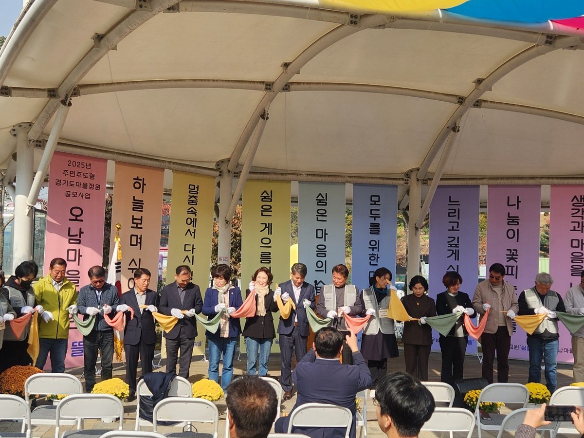 공원관리과 남양주시 주민이 함께 만든 오남마을정원 쉼뜰 문 열다 사진1 [PEDIEN] 남양주시 오남 주민들이 직접 조성한 '쉼뜰'마을정원이 6일 오남역 1번 출구 앞에서 문을 열었다.2025년 경기도 마을정원 조성사업의 일환으로 추진된 이번 사업은 주민들의 손으로 정원을 만들고 이를 통해 마을 공동체를 활성화하는 데 목적을 뒀다.'쉼과 머묾이 있는 마을정원'이라는 콘셉트 아래, 주민들은 정원 설계부터 조성까지 모든 과정에 직접 참여했다.오남역 인근의 1,060㎡ 유휴 부지는 파고라, 벤치, 디자인 가벽 등이 설치되고 불두화, 박태기, 수국 등 다양한 수목이 심어져 사계절 아름다운 휴식 공간으로 탈바꿈했다.특히 오남읍의 천연기념물인 '양지리 향나무'를 기념하기 위해 정원에 향나무를 심어 지역의 정체성을 담아낸 점이 눈에 띈다.개장 행사에는 시의원과 지역 단체 관계자들이 참석해 주민 주도형 정원 조성의 의미를 되새겼다.황학기 '쉼뜰'대표는 정원이 단순히 꽃을 심는 공간을 넘어 이웃 간의 소통을 촉진하는 공간이 되기를 희망하며 오남읍에 더 많은 마을정원이 조성되기를 기대한다고 밝혔다.남양주시 관계자는 '쉼뜰'이 시민 주도형 정원사업의 대표적인 성공 사례라며 정원을 매개로 한 공동체 활동이 남양주 전역으로 확산될 수 있도록 지원을 아끼지 않겠다고 전했다. -