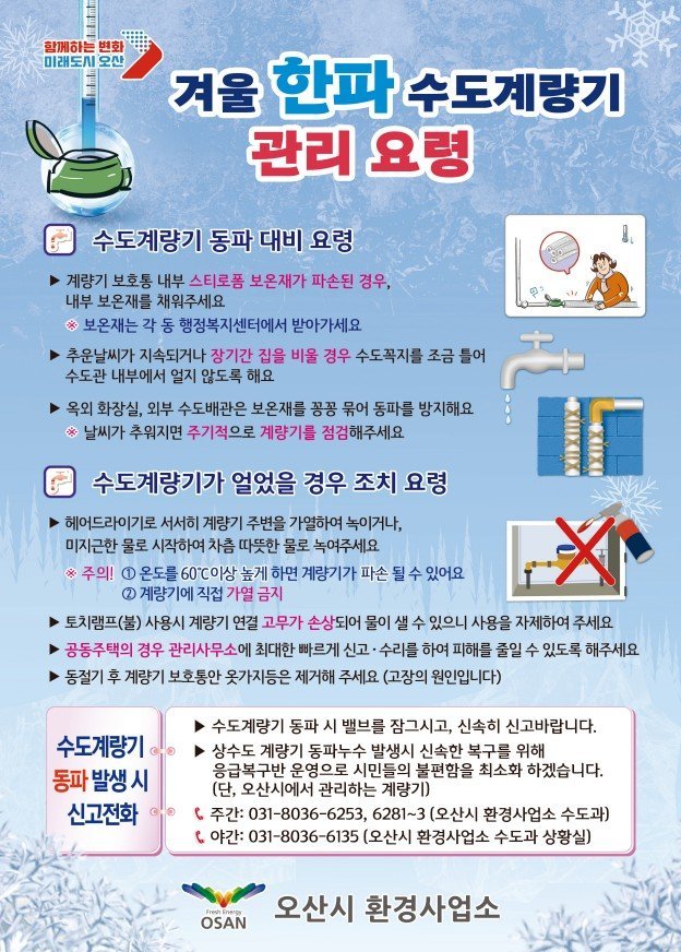 오산시, 겨울철 수도계량기 동파 예방 총력…24시간 상황실 운영