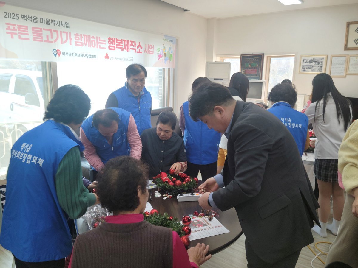 양주시 백석읍 지역사회보장협의체 ‘푸른 물고기가 함께하는 행복제작소’사업 추진 (양주시 제공) [PEDIEN] 양주시 백석읍 지역사회보장협의체가 지난 17일 연말을 맞아 백석읍 가업1리 경로당에서 ‘푸른 물고기가 함께하는 행복제작소’사업의 일환으로 크리스마스 리스와 무드등 만들기 활동을 진행했다.이번 프로그램은 청소년과 어르신이 함께 참여하는 세대 공감형 복지사업으로, 연말 분위기에 맞춰 크리스마스 소품과 무드등을 제작하며 따뜻한 교류의 시간을 가졌다.참여자들은 장식 재료를 직접 고르고 손으로 하나하나 만들며 자연스럽게 이야기를 나눴고, 경로당 안에는 웃음과 온기가 가득 찼다.특히 이번 활동은 연말을 외롭게 보내기 쉬운 어르신들에게는 정서적 위로를, 청소년들에게는 나눔과 배려의 가치를 체험하는 의미 있는 시간이 됐다.완성된 작품들은 경로당 공간을 환하게 밝히며 연말 분위기를 더했다.‘푸른 물고기가 함께하는 행복제작소’는 청소년의 ‘청’과 어르신의 ‘어’를 결합한 ‘청어’에서 착안한 백석읍의 특화 복지 브랜드로, 세대 간 소통과 공감을 통해 지역공동체의 결속을 강화하는 데 목적을 두고 있다.김길영 위원장은 “처음에는 낯설어하던 청소년과 어르신분들께서 함께 소품을 만들며 자연스럽게 웃고 대화를 나누는 모습이 인상 깊었다”며 “앞으로도 행복제작소가 세대를 잇는 따뜻한 연결의 공간이 될 수 있도록 계속 이어가겠다”고 전했다.백승호 백석읍장은 “연말을 맞아 세대가 함께 만든 작은 빛 하나하나가 지역사회를 밝히는 큰 온기가 되고 있다”며 “앞으로도 주민이 체감할 수 있는 세대 공감형 복지사업을 지속적으로 추진해 나가겠다”고 말했다. -