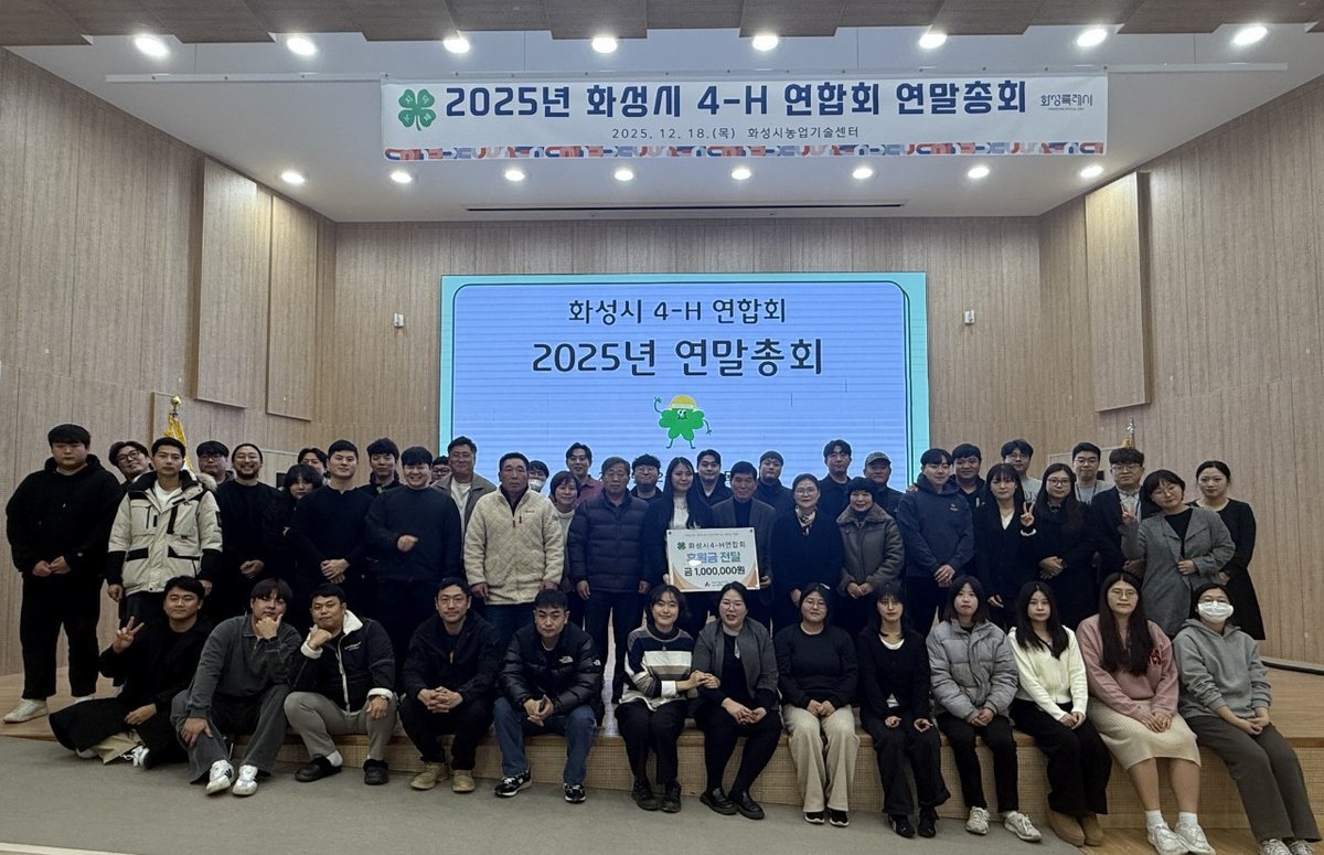 화성시4-H연합회, 연말총회서 아르딤복지관에 기부금 1백만 원 기탁 (화성시 제공) [PEDIEN] 화성시4-H연합회가 지난 18일 화성시농업기술센터 대강당에서 연말총회 및 기부금 기탁식을 개최했다.화성시4-H연합회는 ‘지·덕·노·체’라는 ‘4-H’이념을 바탕으로 청년 농업인의 역량 강화와 지역 농업 발전을 위해 활동하는 화성시 청년 농업인으로 구성된 단체다.교육·교류·정책 참여·사회공헌 활동을 통해 지속가능한 농업과 지역사회 발전에 기여하고 있다.이날 행사에는 4-H연합회원 등 30여 명이 참석한 가운데 화훼 체험, 2025년 4-H 활동 결과 보고, 기부금 기탁식 등이 진행되며, 2025년 한 해 동안 추진한 주요 활동을 회원들과 공유하는 자리가 됐다.화성시4-H연합회는 청년농업인의 의견이 제도에 반영될 수 있도록 중앙·지방의회와 정책 협력에 힘써왔으며, 그 결과 지난 9월 ‘화성시 4에이치활동 지원 조례’가 제정돼 청년농업인 활동을 체계적으로 뒷받침할 제도적 기반을 구축했다.또한, 회원을 대상으로 한 체험학습 전문가 역량강화 과정을 운영해 총 14명이 과정을 수료했으며, 농업·농촌 자원을 활용한 교육 및 체험 프로그램을 현장에서 이끌 수 있는 전문 인력을 양성했다.아울러, 청년농업인이 생산한 농산물과 농업기술센터 기술이전을 통해 개발된 ‘코리요빵’을 지역 행사에서 홍보·판매하며 도농 교류와 지역 농산물 가치의 확산에도 기여했다.이날 화성시4-H연합회는 지역사회와의 상생을 실천하고자 화성시 아르딤복지관에 기부금 1백만 원을 기탁하기 했다.아르딤복지관은 발달장애인을 대상으로 재활·교육·자립 지원 프로그램을 운영하는 복지시설로, 이번 기부금은 발달장애인들이 농촌으로 나가 현장체험을 할 수 있도록 체험활동 운영 예산으로 활용될 예정이다.윤초롱 화성시 4-H연합회장은 “이번 연말총회는 한 해 동안의 활동을 돌아보고, 청년농업인의 역할과 책임을 다시 한번 생각하는 자리였다”며 “앞으로도 교육과 교류를 통해 청년농업인의 역량을 높이고, 지역 농업의 지속가능한 발전을 위해 사회공헌 활동을 꾸준히 이어 나가겠다”고 말했다.