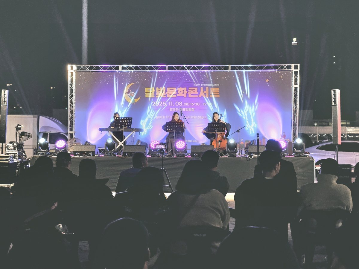 월곶동 주민자치회 달빛문화콘서트 성료 (시흥시 제공) [PEDIEN] 시흥시 월곶동에서 지난 11월 8일, '달빛문화콘서트'가 성황리에 개최됐다.월곶동 주민자치회가 주최한 이번 행사는 월곶동 미래탑광장에서 열렸으며, 주민 간의 문화적 소통을 증진하는 데 기여했다.콘서트에는 음악, 춤, 악기 연주 등 다채로운 무대가 펼쳐졌다. 월곶동 동아리, 주민, 전문 공연팀 등 총 13개 팀이 참여하여 열정적인 공연을 선보였다.250여 명의 주민이 참석하여 가을밤의 정취를 만끽하며 공연을 즐겼다. 주민들은 함께 소통하고 화합하는 시간을 가졌다.이지선 월곶동 주민자치회장은 주민과 동아리가 함께 준비한 공연을 통해 마을 공동체가 하나 되는 의미 있는 시간이었다고 평가했다. 앞으로도 주민 주도의 문화공동체를 만들어가기 위해 노력할 것이라고 밝혔다.조명화 월곶동장은 달빛문화콘서트가 주민 주체 문화 행사의 좋은 본보기가 되었다고 언급했다. 주민자치회의 자율적이고 창의적인 활동을 지원하기 위해 행정적 지원을 아끼지 않겠다고 약속했다. -