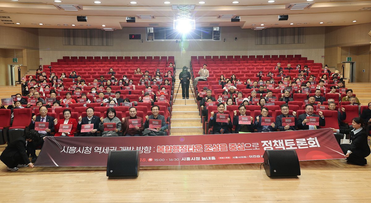 시흥시의회, 시흥시청 역세권 개발 방향 정책토론회 개최 (시흥시의회 제공) [PEDIEN] 시흥시가 시흥시청 역세권 개발을 통해 도시의 미래 성장 동력을 확보하겠다는 구상이다.이를 위해 시흥시의회는 지난 18일 시청 늠내홀에서 '복합행정타운 조성을 중심으로 한 시흥시청 역세권 개발 방향' 정책 토론회를 개최했다.이번 토론회는 시의회의 열두 번째 정책 토론회로, 이건섭 의원의 주관으로 진행됐다. 시흥시청 역세권 개발의 방향을 설정하고, 과제 해결을 위한 합리적인 대안을 모색하며, 시민들의 공감대를 형성하는 것이 목표다.이건섭 의원은 시흥시청 역세권이 단순한 교통 요충지를 넘어 도시의 미래를 담을 핵심 공간이라고 강조했다. 그는 개발 방향을 '연결, 밀도, 복합화'라는 세 가지 키워드로 요약하며, 토론회가 역세권 개발 방향을 구체화하고 시민들이 공감할 수 있는 실행 해법을 도출하는 정책 설계의 장이 되기를 바란다고 밝혔다.조철희 시흥도시공사 도시개발본부장은 시흥시청과 역세권 복합개발 공간 혁신을 주제로 발표했다. 그는 국내외 복합개발 사례를 소개하며, 시흥시의 경쟁력 확보를 위해 시청사를 주거, 문화, 행정 기능이 결합된 복합공간으로 재구성해야 한다고 주장했다.또한 시흥시청의 협소한 규모, 업무 효율성 저하, 노후화 문제 등을 지적하며 정부 차원의 노후 공공청사 복합개발 정책과 연계한 개발 방향 수립을 제안했다.토론에서는 장종민 시흥시청 시설공사과장이 장현공공택지지구 내 시청사 일대를 복합행정타운으로 조성하기 위해 재정 사업에서 민관합동개발 방식으로 전환을 검토 중이라고 밝혔다. LH 소유 미개발 부지와의 시너지를 통해 지역 경제 활성화를 도모할 계획이라고 덧붙였다.이창민 시흥시청 철도과장은 시흥시청 역세권 고밀·복합개발사업에 대해 민간사업자 공모를 완료하고 2027년 하반기 착공을 목표로 도시계획위원회 심의 등 행정 절차를 진행 중이라고 말했다. 이를 통해 지역 경제 활성화와 교통 편의 증진을 기대하고 있다.박성규 삼정KPMG 상무는 복합행정타운 성공의 핵심은 기획 단계의 방향성 확립과 운영 단계의 철저한 준비라고 강조했다. 그는 시흥시가 인구 대비 낮은 구매력과 유동 인구 유치 전략 부재라는 과제를 해결해야 한다고 지적하며, 코엑스 스타필드 사례처럼 콘텐츠와 파트너십 설계가 선행되어야 한다고 조언했다.이건섭 의원은 시흥시청 주변 공공청사부지가 행정 수요와 주거, 상업, 문화 인프라를 융합할 최적의 공간이라고 강조하며, 전문가, 관계 공무원, 주민의 의견을 종합해 시민 눈높이에 맞는 개발이 이루어지도록 노력하겠다고 약속했다. -