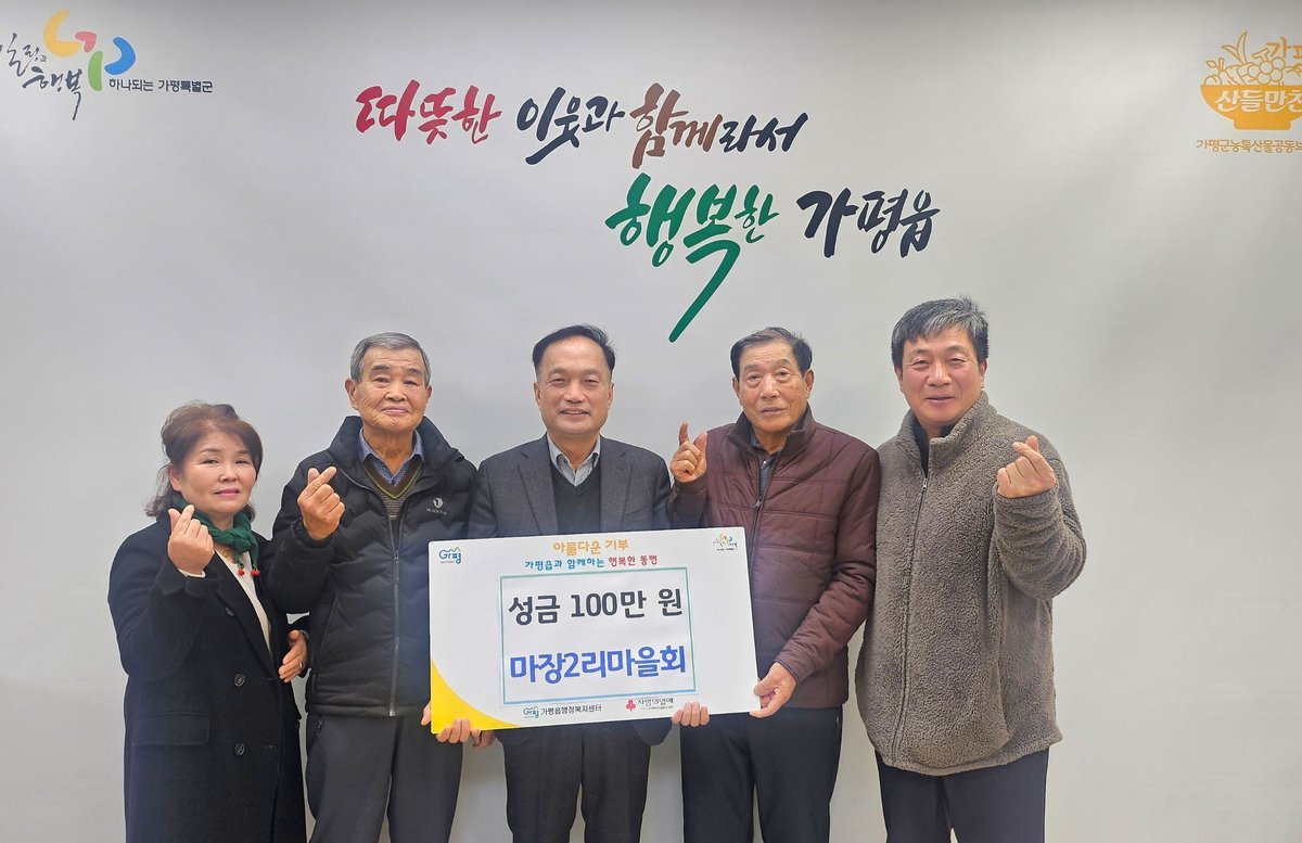 가평군 가평읍 마장2리 마을회, 성금 1백만 원 기탁 (가평군 제공) [PEDIEN] 가평군 가평읍 마장2리 마을회가 최근 따뜻한 나눔을 실천하며 지역 사회에 훈훈함을 더하고 있다.마장2리 마을회는 가평읍 행정복지센터에 어려운 이웃을 돕기 위한 성금 100만원을 전달했다.이번 성금은 지난 7월 집중호우 당시 마장리 일대가 겪었던 수해의 아픔을 극복하는 과정에서 받은 도움에 대한 감사의 마음을 담아 마련됐다.최중호 마장2리 이장은 수해 당시 가평읍 행정복지센터와 다른 마을들의 도움 덕분에 어려움을 이겨낼 수 있었다며, 받은 사랑을 어려운 이웃에게 되돌려주고자 성금을 기탁하게 되었다고 밝혔다.장석조 가평읍장은 마장2리 마을회의 따뜻한 마음에 감사를 표하며, 가평읍 행정복지센터 또한 더욱 노력하여 지역 사회에 봉사할 것을 약속했다.이번 마장2리 마을회의 성금 기탁은 수해의 아픔을 딛고 일어서는 과정에서 이웃을 먼저 생각하는 따뜻한 마음을 보여주는 사례로, 지역 사회에 귀감이 되고 있다. -