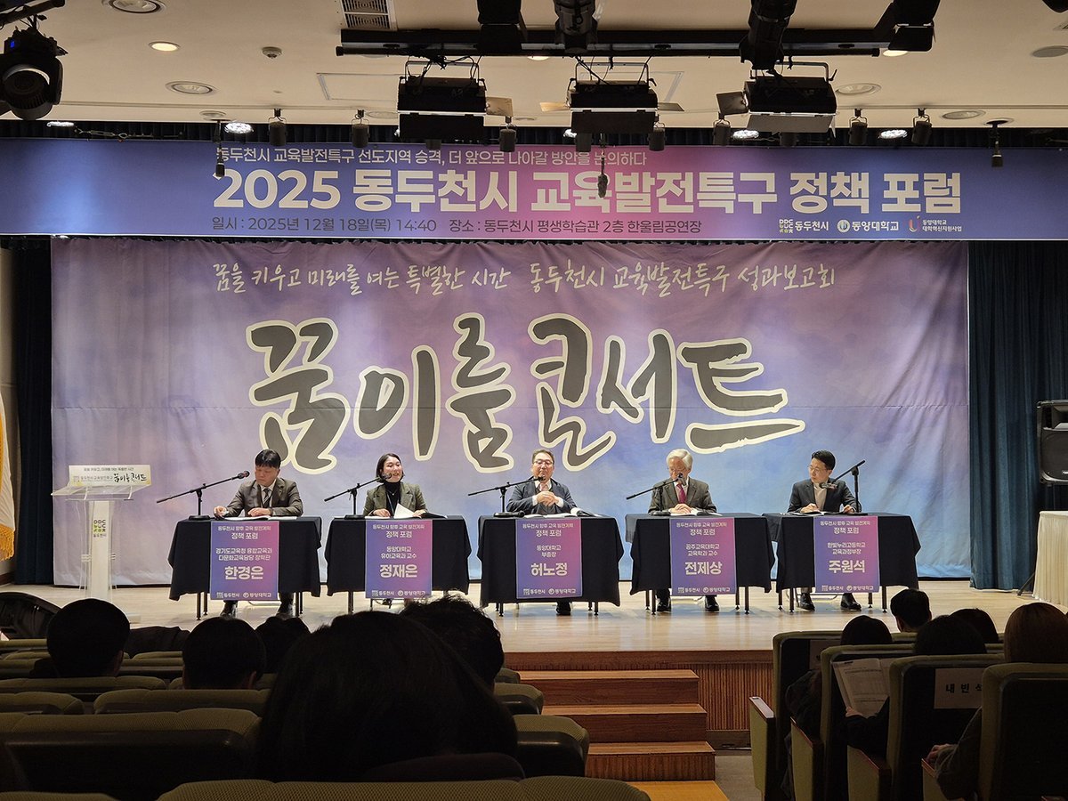 동두천시 교육발전특구 성과보고회 “꿈이룸콘서트”성공적 마무리 (동두천 제공) [PEDIEN] 동두천시는 지난 18일 동두천시 평생학습관에서 열린 ‘동두천시 교육발전특구 성과보고회 「꿈이룸 콘서트」’가 총 500여 명의 시민이 참석한 가운데 성황리에 마무리됐다고 밝혔다.이번 행사는 동두천시가 2024년 2월 교육발전특구 시범지역으로 선정된 이후, 지역 대학과 학교, 교육지원청 등 유관기관과 함께 추진해 온 교육 혁신 성과를 시민들과 공유하고, 지역 교육의 지속적인 발전을 도모하기 위해 마련됐다.행사에서는 △교육발전특구 정책포럼 △미미미누 특별강연 △홍비치라 그림작가 토크쇼 및 사인회 등 다양한 프로그램이 진행됐으며, 교육과 예술을 결합한 구성으로 청소년부터 성인까지 전 세대가 함께 참여할 수 있어 관람객들의 큰 호응을 얻었다.또한 평생학습관 1층 로비에는 △캐리커처로 나만의 머그컵 만들기 △자율주행 로봇 시연 △학생 작품 전시회 등 체험형 이벤트 공간이 운영됐으며, 2년간 학생들이 수업을 통해 제작한 작품 전시와 그 과정을 담은 뮤직비디오는 학교와 학생, 학부모들로부터 큰 관심을 받았다.특히 ‘제1회 교육발전특구 SW·AI 경진대회’시상식에서는 휴머노이드 로봇이 직접 상장을 전달해 로봇 기술과 인간의 협업이 만들어 갈 미래 사회의 모습을 생동감 있게 보여주며 참가자들의 이목을 집중시켰다.동두천시 미래교육진흥원 관계자는 “이번 ‘꿈이룸 콘서트’는 지역 교육의 발전 방향과 미래 비전을 시민들과 함께 공유하는 뜻깊은 자리였다”며 “앞으로도 지속 가능한 교육 환경을 조성하고, 학생들의 창의성과 잠재력을 발굴하기 위한 다양한 정책과 지원을 지속적으로 추진해 나가겠다”고 말했다. -
