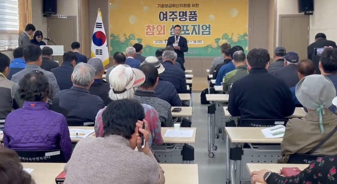 여주시 2025년 기술보급확산지원을 위한 여주명품 참외 심포지엄 성황리 개최 [PEDIEN] 여주시가 지난 5일, 이포권역행복센터에서 '2025년 여주 참외 명품화를 위한 심포지엄'을 성공적으로 개최했다.이번 심포지엄은 참외 재배 농업인, 전문가, 유관기관 관계자 60여 명이 참석하여 기후 변화에 대응하고 토양 관리 기술을 공유하며 농업 현장의 경쟁력 강화 방안을 모색하는 자리였다.심포지엄에서는 여주 지역에 적합한 우수 품종 선발과 품종별 생육 특성 교육이 진행되었다. 또한, 2025년 개발 예정인 여주 맞춤형 내재해형 참외 시설 하우스 표준 모델과 에너지 절감 기술이 소개되었으며, 토양 심층 갈이와 경반층 제거를 통한 뿌리 활착 환경 개선 교육도 이루어졌다.특히 20여 농가를 대상으로 실시한 토양 선충 밀도 검사 결과를 바탕으로 한 맞춤형 토양 관리와 친환경 방제 교육은 농가들의 큰 호응을 얻었다.참석자들은 현장 맞춤형 교육과 기술 보급의 중요성에 공감하며, 지속적인 기술 보급 확산과 협력을 통해 여주 참외의 명품화를 이루어 나가기로 뜻을 모았다.이충우 여주시장은 “여주 참외가 명품 브랜드로 자리매김하기 위해서는 기후 변화에 대응하는 농업 기술과 현장 적용이 필수적”이라며, “이번 심포지엄을 통해 농업인과 전문가들이 함께 소통하는 뜻깊은 시간이 되었을 것이다. 지속적인 지원과 관심으로 참외 농업 발전에 최선을 다하겠다”고 밝혔다.정건수 여주시농업기술센터 소장은 “이번 심포지엄을 바탕으로 앞으로도 과학적 데이터와 현장 중심의 기술 보급으로 여주 참외의 경쟁력 강화에 노력하겠다”고 덧붙였다. -