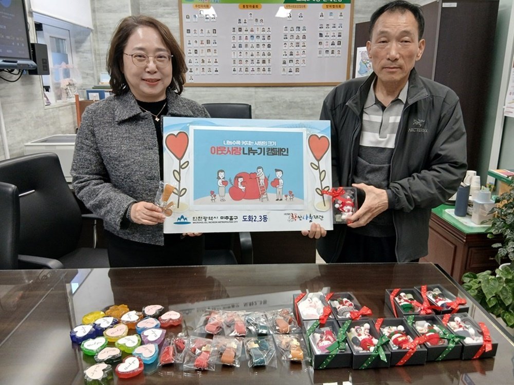 도화2·3동 더샵인천스카이타워1단지 마을공동체, 수제 비누·방향제로 따뜻한 나눔 실천 (미추홀구 제공) [PEDIEN] 인천 미추홀구 도화2·3동에서 더샵인천스카이타워1단지 아파트 마을공동체가 연말을 맞아 특별한 나눔 행사를 진행했다.주민들이 직접 만든 수제 비누와 방향제를 취약계층에 기부하며 따뜻한 온정을 전했다.이번 행사는 단순한 물품 전달을 넘어, 이웃 간의 정을 나누고 지역사회에 긍정적인 영향을 미치고자 기획됐다.더샵인천스카이타워1단지 아파트 마을공동체는 주민들의 적극적인 참여를 통해 수제 비누와 방향제를 정성껏 제작했다.재료 준비부터 포장까지 모든 과정에 주민들이 직접 참여하여 의미를 더했다.마을공동체의 따뜻한 마음이 담긴 물품들은 도화2·3동 관내 취약계층 가정에 전달될 예정이다.특히 겨울철 어려움을 겪는 이웃들에게 작은 위로와 응원이 될 것으로 기대된다.도화2·3동 관계자는 “나눔의 가치는 크기가 아닌 마음에 있다”며, “주민들의 따뜻한 정성이 어려운 이웃들에게 희망을 전달하길 바란다”고 밝혔다.이번 행사는 더샵인천스카이타워1단지 아파트 마을공동체의 지속적인 사회공헌 활동의 일환으로, 앞으로도 지역사회와 함께하는 다양한 활동을 펼칠 계획이다. -