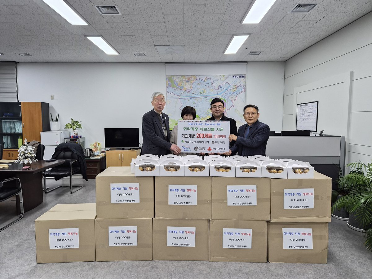 계양구노인인력개발센터 ‘계양가배랑’사업단, 취약계층 어르신 지원 위한 다과류 기탁 (계양구 제공) [PEDIEN] 인천광역시 계양구는 12월 16일 계양구노인인력개발센터 ‘계양가배랑’사업단이 취약계층 어르신 지원을 위해 직접 만든 머핀 200세트를 기탁했다고 밝혔다.이번 기탁은 노인일자리 참여 어르신들이 한 해 동안 열심히 갈고닦은 재능과 수익 일부를 지역사회에 환원하고자 마련됐으며, 지역 내 재가복지시설 이용 어르신들에게 전달될 예정이다.계양구노인인력개발센터 관계자는 “소외된 어르신들이 따뜻한 연말을 보내시길 바라는 마음으로 정성을 모았다.”라며 “앞으로도 지역 나눔 활동과 함께 양질의 노인일자리 창출에 힘쓰겠다.”라고 전했다. -