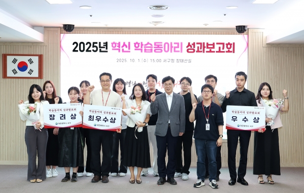 대전 서구, 직원 동아리에서 제안한 이색 아이디어“눈길” [PEDIEN] 대전 서구는 지난 1일 구청 장태산실에서 직원들의 혁신 아이디어를 공유하는 혁신 학습동아리 성과 보고회 및 시상식을 진행했다. 이번 보고회에는 서구청 직원들이 자발적으로 구성한 6개 혁신 학습동아리가 참여해 지역 현안 해결을 위한 연구 성과와 정책 아이디어를 발표했다. 심사 결과, 지하차도 침수 피해 예방 및 대피시설 개선 방안을 발표한 ‘시빌 엔지니어스’ 가 최우수상의 영예를 안았다. 우수상은 도시 인프라 발전에 따른 최첨단 주차 관리시스템 도입 방안을 제안한 ‘S&P’ 가, 장려상은 조직문화 및 일하는 방식 개선 방안을 연구한 ‘조지다’ 가 각각 차지했다. 구는 수상팀에 국내 연수 기회와 시상금을 전달함으로써 노고를 격려했다. 이번에 발굴된 우수 아이디어는 전 부서에 공유하고 구정에 적극 반영해 구민이 체감할 수 있는 정책으로 발전시킬 계획이다. 심사위원장을 맡은 김낙철 부구청장은 “바쁜 업무에도 불구하고 구정 발전을 위해 연구 성과를 내준 직원들의 열정에 감사드린다”며 “창의적인 아이디어가 실제 정책으로 이어지는 혁신적 조직문화를 만들 수 있도록 학습동아리 활동을 지속적으로 지원하겠다”고 말했다. -