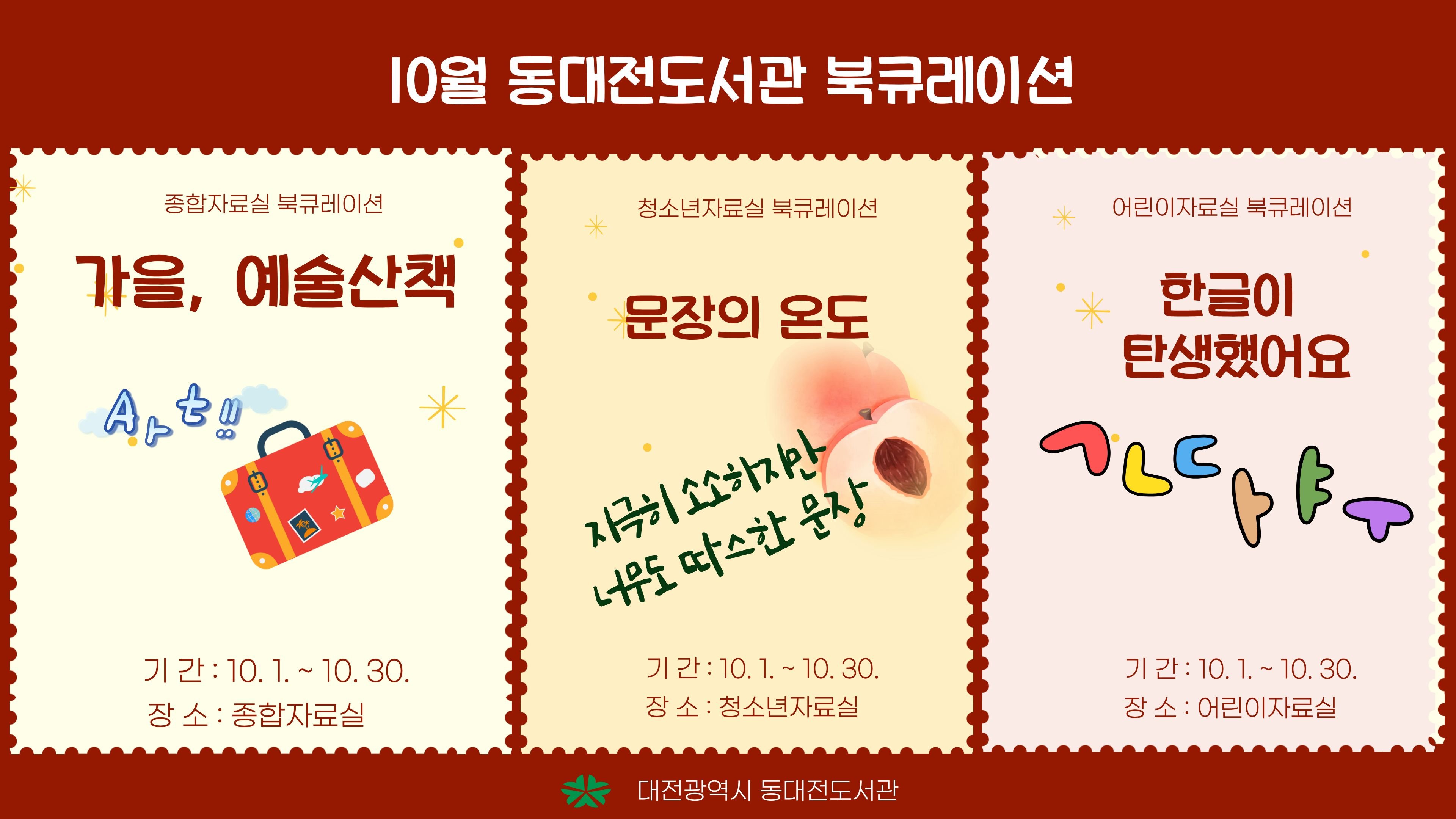 동대전도서관, 10월 한 달간 '연령별 맞춤 독서' 테마 전시 운영