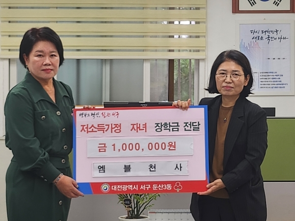 엠블천사 장학회, 둔산3동 저소득 청소년 장학금 후원