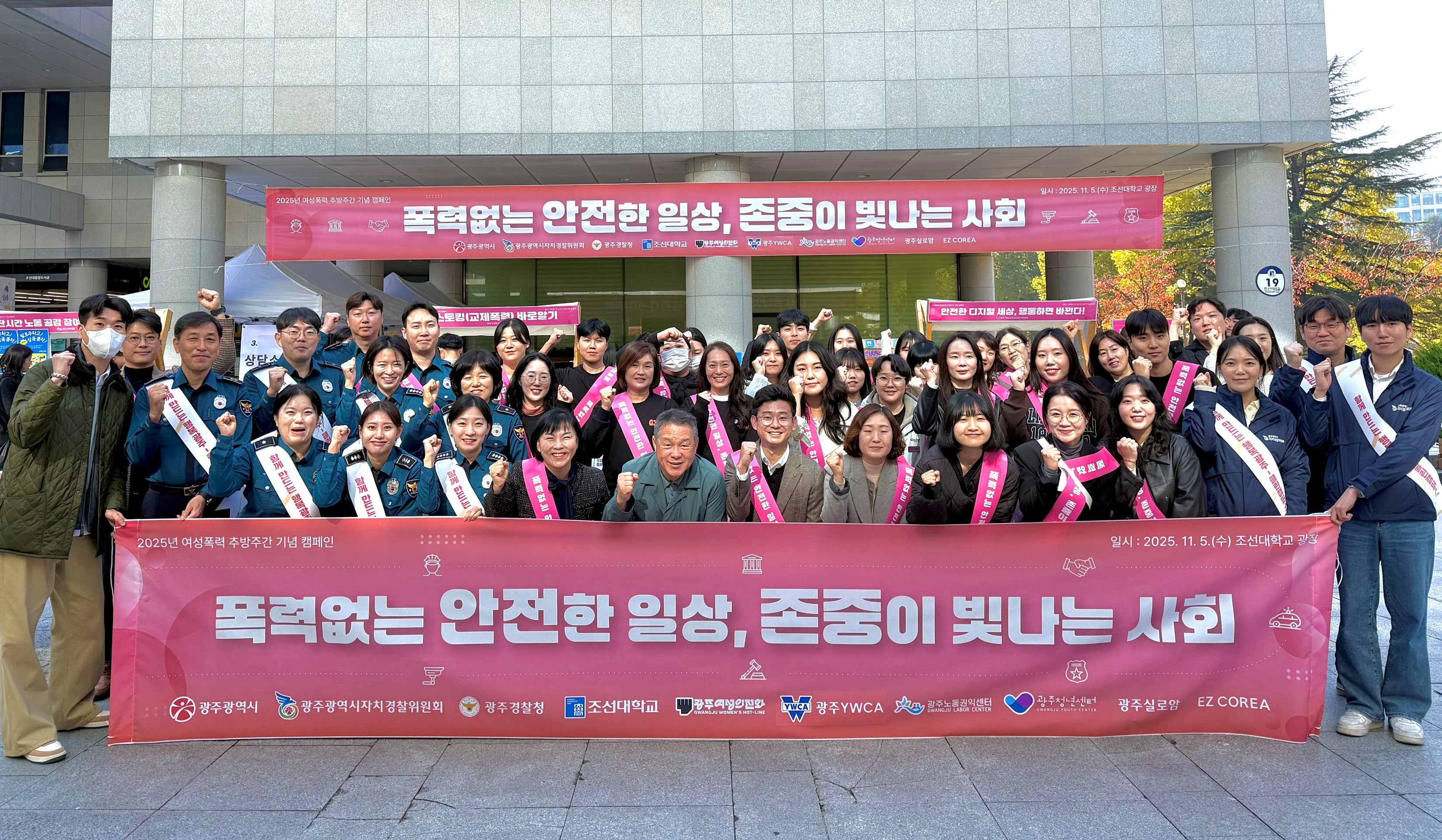 여성폭력 추방주간 기념캠페인 (광주광역시 제공) [PEDIEN] 광주광역시는 ‘여성폭력 추방주간’을 맞아 5일 조선대학교 중앙도서관 광장에서 ‘폭력 없는 안전한 일상, 존중이 빛나는 사회’를 주제로 합동 캠페인을 실시했다.세계 여성폭력 추방의 날 : 유엔이 정한 공식 기념일로 11월25일이다.우리나라는 2019년 ‘여성폭력방지기본법’시행을 계기로 성폭력·가정폭력·여성폭력 주간을 통합해 2020년부터 ‘여성폭력 추방주간’으로 운영하고 있다.이번 캠페인은 광주시를 비롯해 광주자치경찰위원회, 광주경찰청, 조선대학교 인권센터, 광주노동권익센터, 광주청년센터, 광주YWCA 통합상담지원센터, 광주여성인권상담소, 사단법인 실로암 등 9개 기관이 참여했다.특히 올해는 청년층을 대상으로 딥페이크 등 디지털성범죄와 불법 촬영물, 스토킹, 데이트 폭력의 심각성을 알리기 위해 참여형 홍보부스를 운영했다.주요 부스에서는 △스토킹·교제폭력 인식개선 퀴즈 △디지털성범죄 예방 미션 △청년 노동권 상담 △청년주거·취업정책 안내 △마약류 범죄예방 홍보 등 청년세대가 공감할 수 있는 실질적인 정보가 제공됐다.이영동 여성가족국장은 “광주시는 가정폭력, 성폭력, 스토킹, 디지털성범죄 등 여성폭력에 단호히 대응하고 피해자 보호에 최선을 다하겠다”며 “이번 행사가 청년들이 주체적으로 참여하는 폭력예방 문화의 출발점이 되길 바란다. 시민 모두가 안전하고 존중받는 광주를 만들기 위해 지속적으로 정책과 지원을 강화하겠다”고 말했다. -