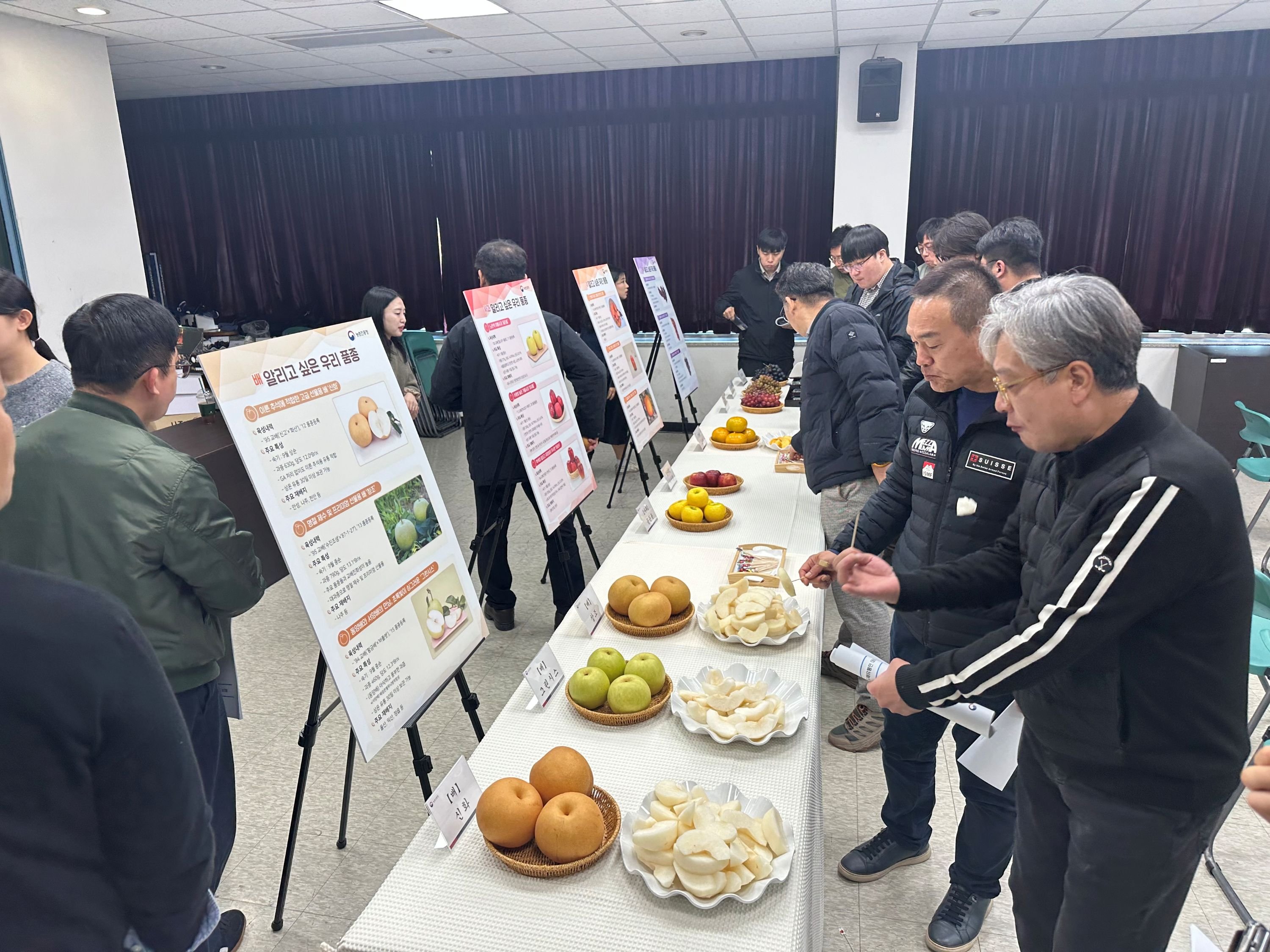 서부도매_신품종_홍보행사 [PEDIEN] 광주 서부농수산물도매시장이 농촌진흥청과 손잡고 농산물 신품종 홍보에 나섰다. 새로운 품종을 소개하고 시장 경쟁력을 높이기 위한 시도다.지난 4일, 서부도매시장에서는 농촌진흥청 주관으로 '농산물 신품종 홍보·전시 행사'가 열렸다. 이 자리에는 도매시장 관계자, 경매사, 중도매인 등 약 50여 명이 참석했다.이번 행사는 도매시장 유통 종사자들에게 새로운 품종을 알리고, 이를 통해 도매시장의 활성화와 경쟁력 강화를 목표로 한다. 농촌진흥청이 개발한 사과, 배, 단감, 포도, 감귤 등 5개 품목 17종의 신품종이 전시되어 참가자들의 눈길을 끌었다.참석자들은 각 품종의 숙기, 당도, 저장성 등 주요 특징과 함께 출하 시기, 포장재 등 유통 정보를 상세히 안내받았다. 특히 신품종을 직접 맛보며 품평하는 시간을 가졌다.임진석 서부농수산물도매시장관리사무소장은 "이번 행사를 통해 신품종 유통이 확대되고, 도매시장 품목 다양화와 거래 활성화로 이어지기를 기대한다"고 밝혔다. 새로운 품종들이 시장에 활력을 불어넣을 수 있을지 주목된다. -