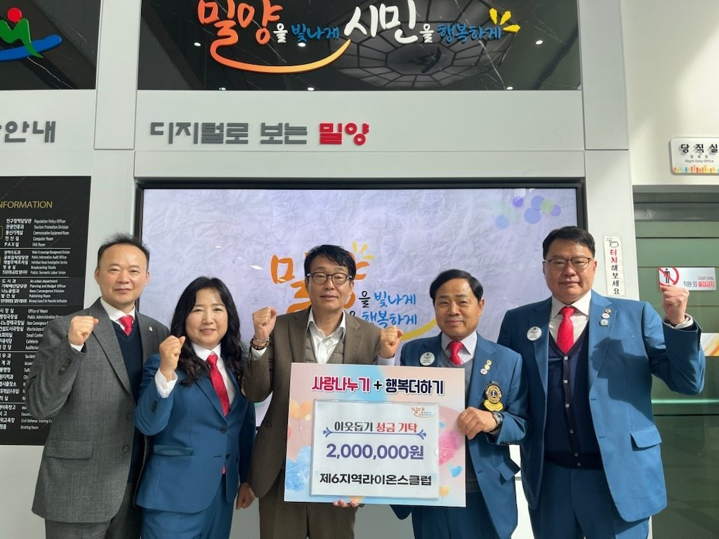 제6지역 라이온스클럽, 밀양시에 200만원 성금 기탁…따뜻한 나눔 실천