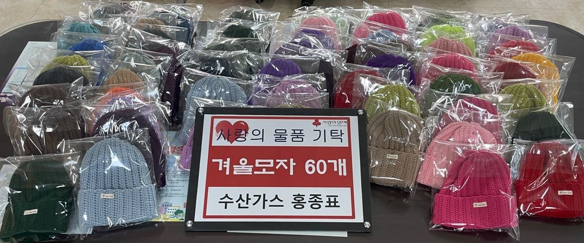 홍종표 수산가스 대표, 직접 만든 뜨개 모자 60개 기부