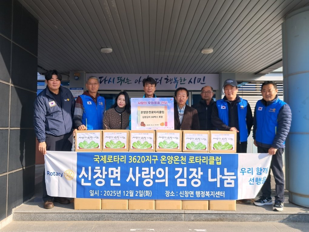 [PEDIEN] 온양온천로타리클럽이 2일 아산시 신창면의 소외된 이웃들에게 따뜻한 겨울을 선물했다.김장김치와 연탄을 전달하며 사랑 나눔을 실천, 지역 사회에 훈훈함을 더했다.이번 봉사활동에서 온양온천로타리클럽은 김장김치 30박스를 신창면 행복키움추진단에 기탁했다. 김장김치는 신창면 관내 독거노인, 장애인 등 어려운 이웃들에게 전달될 예정이다.뿐만 아니라 회원들은 직접 연탄을 배달하며 대상 가정을 방문, 안부를 확인하는 시간을 가졌다.이상훈 온양온천로타리클럽 회장은 “작은 나눔이지만 어려운 이웃들에게 따뜻한 위로가 되기를 바란다”고 전했다. 이어 “앞으로도 지역사회를 위한 다양한 봉사활동을 꾸준히 이어갈 것”이라고 밝혔다.지민영 신창면장은 “바쁜 일정에도 나눔을 실천하는 온양온천로타리클럽에 깊이 감사드린다”며 고마움을 표했다. 덧붙여 “앞으로도 민·관이 협력하여 따뜻한 지역 공동체를 만드는 데 최선을 다하겠다”고 말했다.