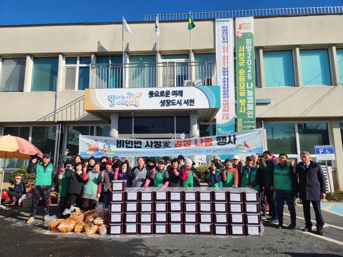 비인면, 김장 나눔 행사로 따뜻한 온정 전달 (서천군 제공) [PEDIEN] 비인면에서 따뜻한 겨울을 맞이하기 위한 김장 나눔 행사가 펼쳐졌다.비인면 새마을남녀지도자협의회는 지난달 27일부터 28일까지 지역 내 기관 및 단체의 후원과 자원봉사자들의 참여 속에 '사랑애 김장 나눔 행사'를 성황리에 개최했다고 밝혔다.이번 행사는 비인면 새마을협의회, 이장단, 주민자치회가 직접 재배한 배추 500포기를 사용하여 더욱 의미를 더했다. 새마을지도자, 이장단, 행복비인후원회, 행정복지센터 직원 등 약 100여 명이 참여하여 배추 수확부터 절임, 김장까지 이틀간 구슬땀을 흘렸다.특히 비인중학교 학생 20여 명도 함께 참여하여 나눔의 의미를 되새기며 행사에 활력을 불어넣었다.서서천농협, 비인면 신협, 의용소방대, 자율방범대 등 지역 기관 및 단체들의 후원도 이어져 지역사회가 하나 되어 힘을 보탰다.이날 정성껏 담근 김장김치는 독거노인, 수급자, 장애인 등 지역 내 어려운 이웃 170가구에 전달되어 따뜻한 온정을 나눴다.김진배·홍성숙 새마을협의회장은 “많은 분들의 정성과 참여 덕분에 어려운 이웃들에게 따뜻한 마음을 전할 수 있었다”며 “앞으로도 민관 협력을 통해 더욱 따뜻한 비인면을 만들어나가기 위해 노력하겠다”고 다짐했다. -