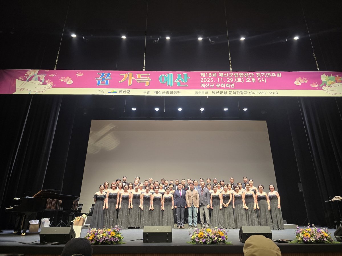 예산군 예산군립합창단, 제18회 정기연주회 성황리 개최 (예산군 제공) [PEDIEN] 예산군립합창단이 지난 11월 29일 예산문예회관에서 '꿈 가득 예산'을 주제로 제18회 정기연주회를 성공적으로 개최했다. 오랜 시간 갈고닦은 실력을 선보이며 관객들의 뜨거운 박수갈채를 받았다.김세웅 지휘자의 섬세한 지휘 아래, 김소형, 진찬양 반주자의 아름다운 연주가 더해져 풍성한 무대가 펼쳐졌다. '오래된 가을', '담쟁이', '상록수', 'Sanctus', '밀양아리랑' 등 총 9곡의 다채로운 레퍼토리가 관객들의 귀를 사로잡았다.특히, 이번 연주회에서는 팬플스앙상블의 청아한 팬플룻 연주와 예산 출신 정가 유도현 명창의 '뱃노래' 특별 공연이 펼쳐져 더욱 풍성한 볼거리를 제공했다. 관객들은 아름다운 선율과 깊은 울림에 감동하며 뜨거운 호응을 보냈다.예산군 관계자는 예산군립합창단이 지역 문화 발전에 크게 기여하고 있다고 평가하며 앞으로도 군민과 소통하고 화합할 수 있는 다양한 기회를 마련하겠다고 밝혔다.2004년 창단한 예산군립합창단은 그동안 꾸준한 활동을 통해 지역을 대표하는 합창단으로 자리매김했다. 전국합창경연대회 우수상, 충청남도합창경연대회 대상 등 화려한 수상 경력이 이를 뒷받침한다. -