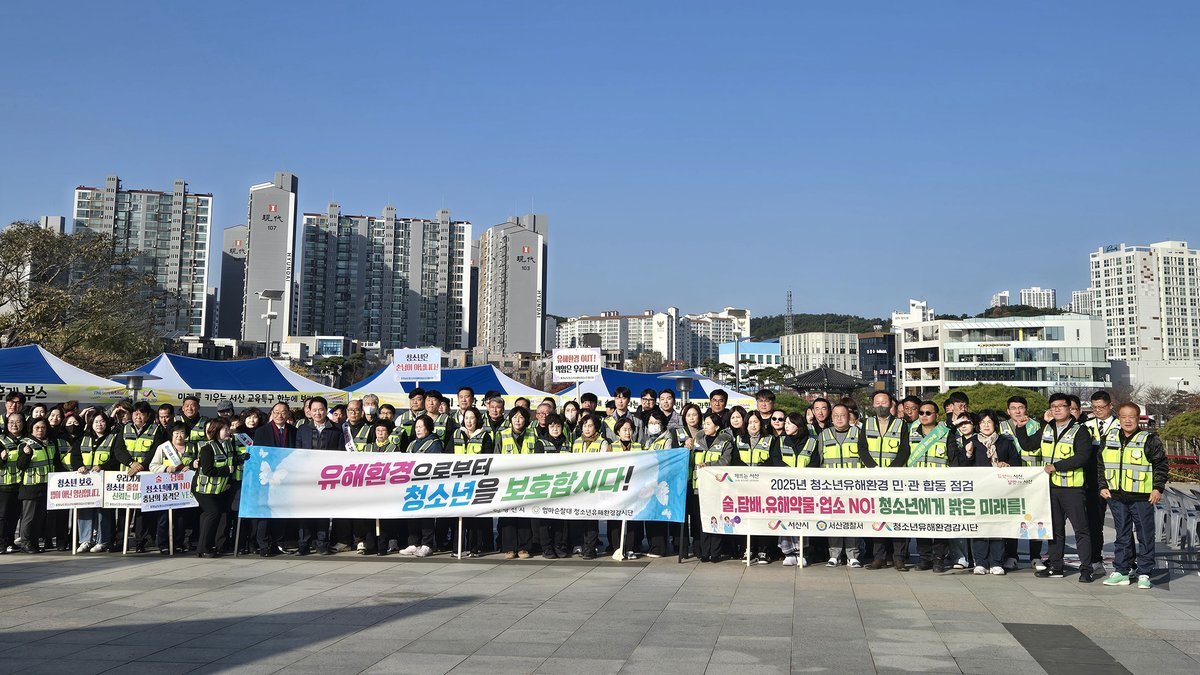 서산시, 수능 후 청소년 보호 위한 민‧관 합동 캠페인 실시 (서산시 제공) [PEDIEN] 서산시가 2025학년도 대학수학능력시험 이후 청소년들의 안전을 위해 유관기관과 합동 캠페인을 벌였다. 수능 후 청소년들의 일탈 행위를 예방하고 건전한 문화 환경을 조성하기 위함이다.이번 캠페인에는 충청남도유해환경감시단협의회를 비롯해 경찰서, 교육지원청, 청소년 유해환경감시단, 민간 봉사단체 등 100여 명이 참여했다. 이들은 청소년들이 쉽게 접근할 수 있는 중앙호수공원과 유해업소 밀집 지역을 중심으로 순찰과 계도를 진행했다.특히 편의점, 일반음식점, 노래연습장 등 청소년 출입이 잦은 업소를 대상으로 청소년 출입·고용 금지 위반 행위를 집중적으로 점검했다. 또한 '19세 미만 청소년 술·담배 판매 금지' 스티커 부착 여부를 확인하고, 청소년 보호법 안내 홍보물을 배부했다.시는 이번 캠페인을 통해 민·관 협력 기반의 청소년 보호 안전망을 더욱 강화한다는 방침이다. 심은주 가족지원과장은 수능 후 청소년들의 해방감과 함께 증가할 수 있는 위험에 대비해 지역사회와 협력, 유해 환경 예방과 청소년 안전관리에 최선을 다하겠다고 밝혔다.서산시는 수능 이후 연말까지 청소년 밀집 지역을 중심으로 특별 순찰 및 홍보 활동을 지속적으로 추진할 계획이다. -