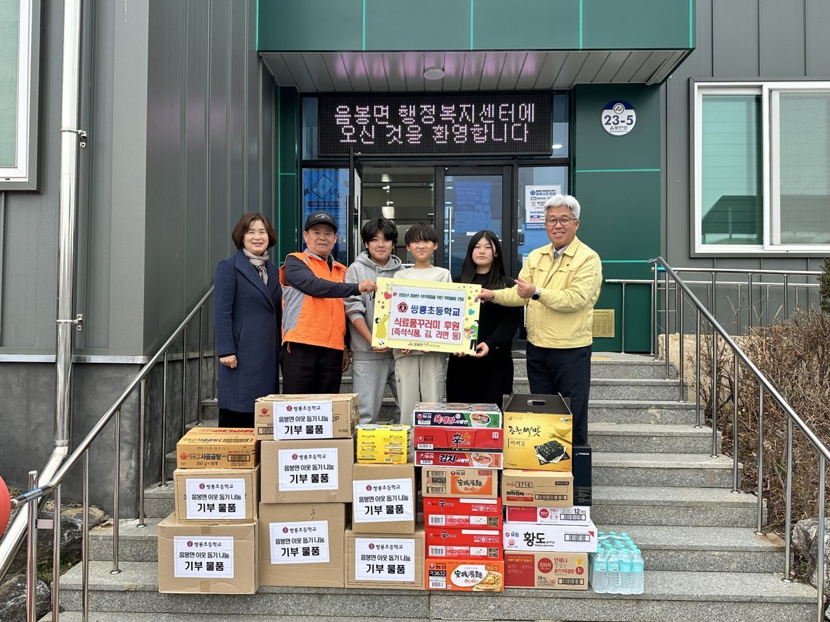 쌍룡초등학교, 아산시 음봉면 행복키움추진단에 취약계층을 위한 식료품 후원 (아산시 제공) [PEDIEN] 쌍룡초등학교가 지난 16일 아산시 음봉면 행복키움추진단에 지역 내 어려운 이웃을 위한 따뜻한 마음을 전달했다.학생들과 교직원들이 자발적으로 참여하여 마련한 식료품을 후원한 것이다. 후원 물품은 햇반, 김, 라면, 통조림 등 간편하게 먹을 수 있는 즉석식품들로 구성됐다.이번 후원은 쌍룡초등학교가 학생들에게 나눔의 가치를 실천하는 교육의 일환으로 추진됐다. 학생들은 자발적인 참여를 통해 어려운 이웃을 돕는 따뜻한 마음을 키웠다.황선미 교장은 “작은 정성이지만 학생들과 함께 나눔의 가치를 실천할 수 있어 매우 뜻깊게 생각한다”며, “앞으로도 지역사회의 어려운 이웃들을 위한 나눔 활동에 꾸준히 참여할 계획”이라고 밝혔다.이의천 음봉면 행복키움추진단장은 “아이들의 따뜻한 마음이 담긴 후원에 깊이 감사드린다”며 “전달해주신 물품은 꼭 필요한 이웃들에게 소중하게 전달하겠다”고 말했다.이정성 음봉면장은 “학교 구성원 모두가 한마음으로 참여해주신 덕분에 관내 도움이 필요한 이웃들이 더욱 따뜻한 연말을 보낼 수 있을 것 같다”며 감사의 뜻을 전했다. 또한 “아이들의 따뜻한 마음이 이웃들에게 잘 전달될 수 있도록 행정에서도 적극적으로 협력하겠다”고 덧붙였다.쌍룡초등학교의 따뜻한 나눔은 지역사회에 훈훈한 온기를 불어넣고 있다. 이러한 나눔 활동이 더욱 확산되어 어려운 이웃들에게 희망을 전달하고, 더불어 함께 살아가는 따뜻한 사회를 만들어가는 데 기여할 것으로 기대된다. -