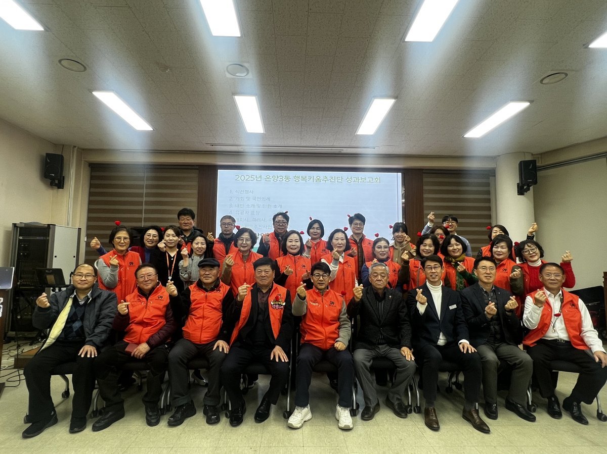 2025년 온양3동 행복키움추진단 성과보고회 개최 (아산시 제공) [PEDIEN] 아산시 온양3동 행복키움추진단이 지난 15일, 행정복지센터에서 2025년 성과보고회를 열고 한 해 동안의 활동을 돌아봤다.이날 보고회에는 행복키움추진단 단원, 맹의석 부의장, 복지통장, 후원자, 유관기관 관계자 등 100여 명이 참석하여 자리를 빛냈다.보고회는 유공자 표창, 행복키움추진사업 성과 보고, 기념 촬영 순으로 진행되었다.온양3동 행복키움추진단은 지역 내 소외된 이웃을 돕기 위해 다양한 활동을 펼쳐왔다. 특히, 복지 사각지대에 놓인 주민들을 발굴하고 지원하는 데 힘썼다.임승근 온양3동장은 “한 해 동안 온양3동의 어려운 이웃을 위해 헌신해 주신 행복키움추진단과 후원자 여러분께 진심으로 감사드린다”고 말했다.이어 “앞으로도 민과 관이 긴밀하게 협력하여 복지 사각지대 없는 행복한 온양3동을 만들어 나가겠다”고 강조했다.박충서 단장은 “온양3동을 위해 물심양면으로 함께해 주신 모든 단원과 후원자분들께 감사드린다”며 감사의 뜻을 전했다.덧붙여 “앞으로도 도움이 필요한 이웃을 위해 지속적인 나눔과 실천을 이어갈 것”이라고 다짐했다.이번 성과보고회를 통해 온양3동 행복키움추진단은 앞으로도 지역 사회의 복지 증진을 위해 더욱 노력할 것을 약속했다. 이들의 따뜻한 나눔 활동은 온양3동을 더욱 살기 좋은 곳으로 만들어갈 것으로 기대된다. -