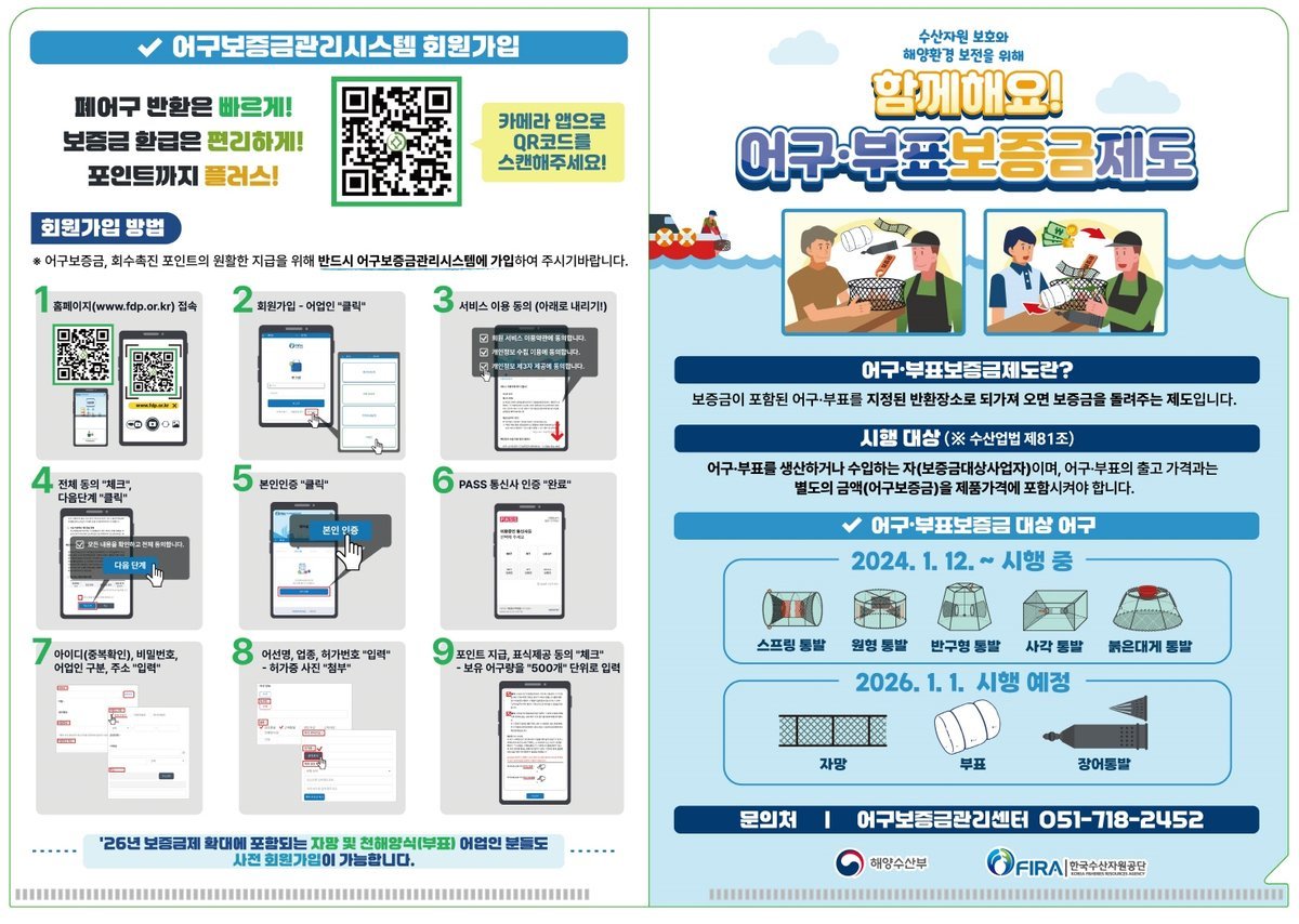 태안군, 해양쓰레기 절감 위한 ‘어구보증금제 회수관리 사업’추진 (태안군 제공) [PEDIEN] 태안군이 해양 쓰레기 문제 해결을 위해 어구 보증금제 회수관리 사업을 확대 시행한다.군은 어민들의 적극적인 참여를 유도하여 깨끗한 바다 환경을 조성한다는 목표다.어구 보증금제는 어구 구매 시 보증금을 포함하여 판매하고, 사용한 어구를 지정된 장소로 반납하면 보증금을 돌려주는 제도다. 태안군은 지난해 1월부터 이 제도를 시행하고 있다.현재는 스프링 통발, 원형 통발 등 일부 통발류만 해당되지만, 내년 1월부터는 자망, 부표, 장어통발까지 회수 대상 어구를 확대할 계획이다.기존에는 통발 종류에 따라 개당 최대 4300원까지 환급받을 수 있었다. 회수 대상이 확대됨에 따라 더 많은 어민들이 혜택을 받을 수 있을 것으로 예상된다.어구 보증금제 참여를 희망하는 어민은 어구보증금관리시스템에 접속하여 회원 가입 후 어선 정보 등을 입력하면 된다.태안군은 올해 총 5천만 원의 사업비를 투입하여 안면도수협을 통해 폐어구 수거 및 처리를 진행하고 있다. 안면읍 백사장항에서 매주 월요일부터 금요일까지 폐어구를 수거한다.태안군 관계자는 “어구 보증금제는 해양 환경 보호와 어업 자원 보호를 위한 노력의 일환”이라며 “어민들의 적극적인 참여를 기대한다”고 밝혔다.군은 이번 사업 확대를 통해 수산 자원 피해를 예방하고 청정한 해양 환경을 조성하는 데 크게 기여할 것으로 전망하고 있다. -