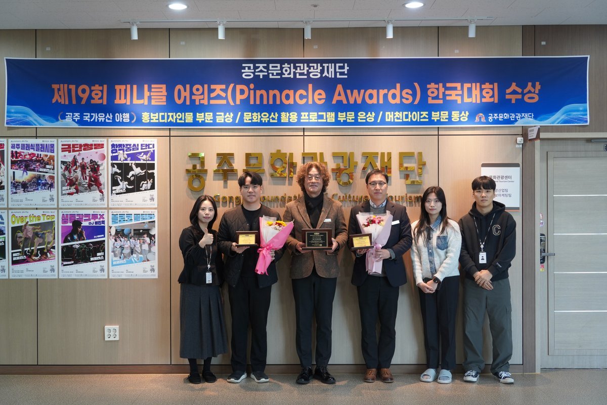 공주문화관광재단, 제19회 피나클 어워즈 한국대회 3개 부문 수상 (공주시 제공) [PEDIEN] 공주문화관광재단은 지난 12월 1일부터 2일까지 충남 부여군에서 열린 ‘제19회 피나클 어워즈 한국대회’에서 ‘공주 국가유산 야행’이 3개 부문 수상의 영광을 안았다고 밝혔다.세계축제협회 한국지부가 주관하는 제19회 피나클 어워즈에서 지난 9월 공주 왕도심 일원 근대 국가유산에서 개최한 ‘공주 국가유산 야행’이 △ 홍보디자인물 부문 ‘금상’△ 문화유산 활용 프로그램 부문 ‘은상’△ 머천다이즈 부문 ‘동상’을 수상했다.축제계의 올림픽이라 불리는 세계축제협회 피나클 어워즈는 매년 축제를 글로벌 스탠더드 기준에서 평가하고 우수 축제를 발굴·선정하고 있다.올해 피나클 어워즈 한국대회는 전국 45개 지자체·재단, 70개 축제가 공모에 참여했다.세계축제협회 한국지부는 지난 20여 년 동안 한국과 아시아 지역 축제의 품질 향상과 글로벌 교류 확대에 기여 해왔으며, 한국대회·아시아대회·세계대회로 이어지는 축제 경쟁 체계를 구축해 온 축제 전문 기관이다.공주문화관광재단은 피나클 어워즈 3개 부문에서 수상했는데, 홍보디자인물과 머천다이즈 부문에서는 옛 공주읍사무소, 공주제일교회, 공주중동성당 등 공주의 근대 국가유산 이미지를 활용한 홍보물 제작으로 MZ세대와 가족 단위 관광객의 큰 호응을 받았다는 점에서 높은 평가를 받았다.문화유산 활용 프로그램 부문에서는 공주 국가유산 야행의 시대적 배경, 이야기, 상징성 등을 고려한 프로그램을 대거 기획·운영하여 다른 지역과 차별화된 분위기를 조성하고, 근대 국가유산의 의미와 가치를 확산하였다는 점에서 심사위원단의 고른 호평을 얻었다.공주 국가유산 야행은 피나클 어워즈 한국대회에서 2년 연속 수상하는 쾌거를 이뤄냈으며, 2026년에도 근대 공주의 밤을 밝힐 예정이다.공주문화관광재단 김지광 대표이사는 “이번 수상은 공주 국가유산 야행을 통해 공주 왕도심 근대 국가유산이 지닌 가치를 시민 여러분들과 함께 확산해 온 노력의 성과”라며, “앞으로도 지역과 함께 성장하는 지속가능한 축제 모델을 만들어 공주의 매력을 더욱 널리 알리는 데 최선을 다하겠다.”고 소감을 밝혔다. -