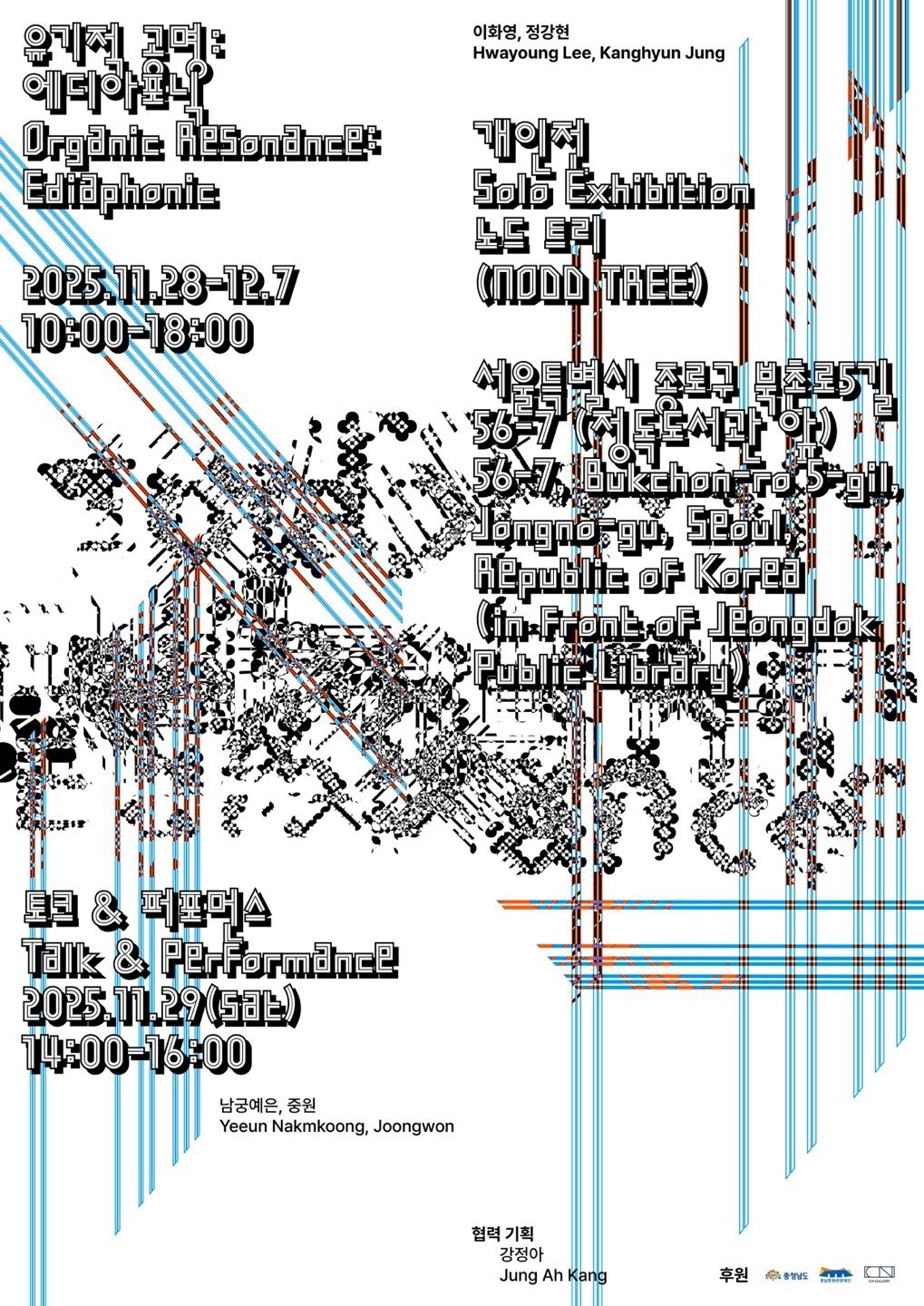 [PEDIEN] 충남문화관광재단은 충청남도 문화예술 서울전시장 CN갤러리에서 2025년 제13차 정기대관 전시 을 11월 28일부터 12월 7일까지 10일간 개최한다.이번 정기대관 전시는 서해안에서 만난 물질과 풍경을 바탕으로, 사라지거나 남겨진 흔적을 새로운 시각으로 풀어내는 아티스트 듀오 노드 트리의 그룹전이다.버려진 그물과 플라스틱, 철분 등 일상 속 재료들은 △설치 △영상 △사운드 작업으로 확장되며, 갤러리 전 층에서 다양한 방식으로 관람객과 만난다.작업은 충남 태안 신진항과 천수만, 서산 AB간척지 등에서 수집한 재료를 해체하고 다시 엮는 과정으로 진행된다.작가는 풍경을 직접 재현하는 대신, 재료가 품은 호흡과 리듬을 드러내는 데 집중한다.관람객은 이를 통해 재료가 지나온 경로와 사용의 흔적을 마주하며, 우리의 환경과 삶을 새롭게 바라보는 경험을 하게 된다.부여를 기반으로 활동하는 아티스트 듀오 노드 트리는 지역에 남은 기억과 장소의 흔적을 꾸준히 탐구해왔다.이화영은 지역의 서사를 시각적으로 풀어내고, 정강현은 현장음과 전자음으로 공간의 리듬을 만든다.두 작가는 사라진 것을 현재의 감각으로 번역하며, 지역성과 시간성을 잇는 작업을 이어오고 있다.오는 11월 29일 오후 2시에는 아티스트 토크와 사운드 퍼포먼스가 진행된다.관람객은 작업이 생성되는 과정과 지역에서의 경험을 직접 들을 수 있으며, 이어지는 퍼포먼스를 통해 작품의 감각을 더욱 생생하게 체험할 수 있다.전시는 누구나 무료로 관람할 수 있으며, 운영 시간은 오전 10시부터 오후 6시까지, 매주 월요일과 공휴일은 휴관한다.