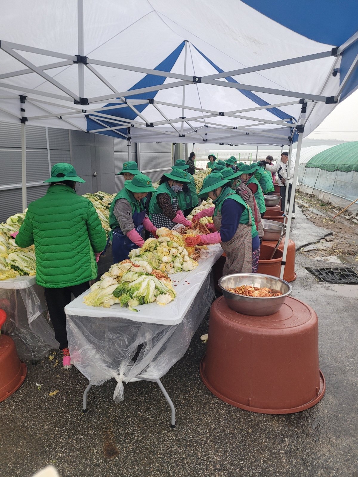 [PEDIEN] 부여군 세도면 새마을협의회와 부녀회가 지난 23일부터 25일까지 '사랑의 김장 나누기' 행사를 개최하며 지역사회에 따뜻한 온정을 전했다.이번 행사는 세도면 내 취약계층을 돕기 위해 마련되었으며, 새마을협의회, 부녀회, 세도면 직원, 산불전문예방진화대원, 기관단체장 등 70여 명이 참여하여 구슬땀을 흘렸다. 특히 김영춘 부여군의회의장, 김민수 도의원, 김기서 도의원이 방문해 봉사자들을 격려하며 힘을 보탰다.김장에 사용될 배추는 반조원리 중원농장에서 농지를 지원받아 봄부터 직접 경작했으며, 양념 또한 동사리 주민들의 후원으로 마련되었다. 행사 기간 동안 많은 비가 예보되었지만, 천막을 설치하며 작업을 이어간 끝에 10kg 김치 160박스를 완성했다.정성껏 준비된 김치는 세도면 33개 마을 부녀회장들이 직접 취약계층 가구와 경로당을 방문하여 전달할 예정이다. 신영순 새마을부녀회장은 궂은 날씨에도 불구하고 함께 참여해준 모든 이들에게 감사의 인사를 전하며, 정성껏 담근 김치가 어려운 이웃들에게 조금이나마 도움이 되기를 바란다고 밝혔다.김주숙 세도면장은 앞으로도 세도면의 따뜻한 나눔 문화를 지속적으로 이어갈 것을 약속했다. 이번 김장 나누기 행사는 세도면 주민들의 따뜻한 마음과 협력을 보여주는 뜻깊은 사례로, 지역사회에 훈훈한 감동을 선사하고 있다.