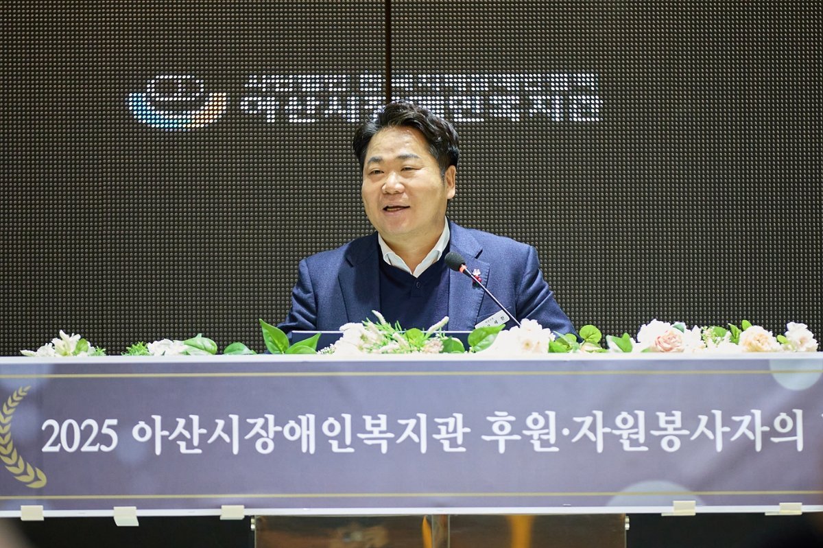 ‘2025년 아산시장애인복지관 후원·자원봉사자의 밤’성황리 개최 (아산시 제공) [PEDIEN] 아산시장애인복지관이 지난 2일 '2025년 후원·자원봉사자의 밤' 행사를 성황리에 개최했다.이번 행사는 한 해 동안 복지관 사업에 헌신한 후원자와 자원봉사자에게 감사의 마음을 전하고, 지역 사회의 나눔 문화를 확산하는 데 목적을 두었다.이날 행사에는 오세현 아산시장을 비롯해 시·도의원, 지역 기관 관계자, 후원자, 자원봉사자 등 300여 명이 참석하여 자리를 빛냈다.행사에서는 지역 복지 발전에 기여한 개인과 단체에 대한 표창이 진행되었다. 아산시장상은 유영남, 쌍교숯불갈비 아산점, 이광훈에게 돌아갔다. 아산시의회의장상은 배우수와 윤수정이 수상했다. ㈜한화에어로스페이스 아산사업장은 국회의원상을, ㈜해성전력은 한국지체장애인협회 법인이사장상을 받았다. 장애인복지관장상은 신혜정에게 수여되었다.이어진 장학금 전달식은 행사에 따뜻함을 더했다. 아산시장애인복지관 후원회, 온양삼일교회, 좋은아침페스츄리 신정호수점, 현대기아충청서비스, 굿모닝어린이집, 청심국제고등학교, 사랑나눔방 등이 장학금을 전달하며 나눔의 의미를 되새겼다.오세현 아산시장은 축사를 통해 도시 발전에 따른 사회적 약자 배려의 중요성을 강조했다. 또한, 아산시가 전담 부서 신설과 장애인복지관 신축을 지속적으로 추진하여 장애인, 여성, 노인 등 다양한 계층이 함께 어울려 살아갈 수 있는 따뜻한 공동체 도시를 만들겠다고 약속했다. -