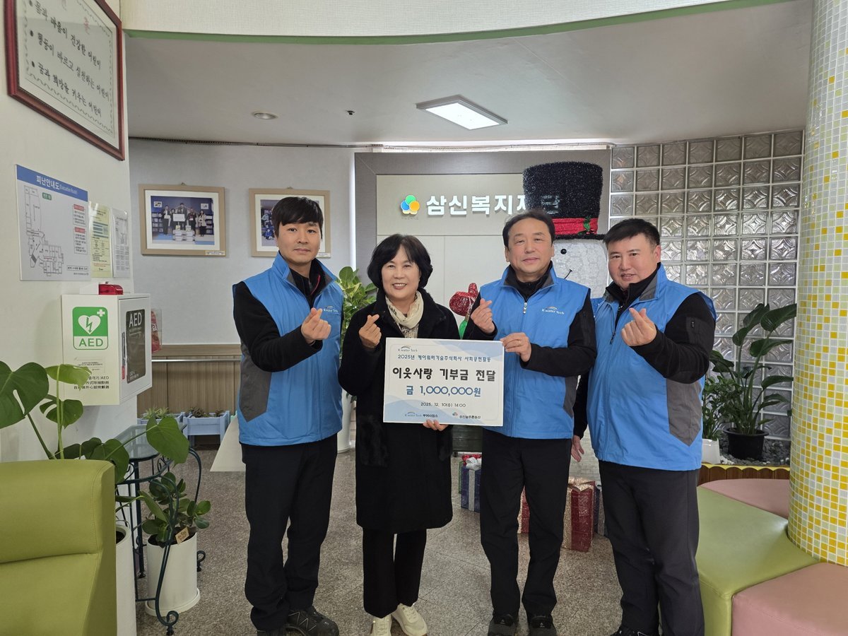 케이워터기술 부여사업소, 삼신늘푸른동산에 후원금 100만 원 전달 (부여군 제공) [PEDIEN] 케이워터기술 부여사업소가 지역 아동양육시설인 삼신늘푸른동산에 후원금 100만 원을 전달하며 따뜻한 나눔을 실천했다.이번 후원은 단순한 금전적 지원을 넘어, 지역사회 아동·청소년들의 복지 증진과 밝은 미래를 응원하는 의미를 담고 있다.후원금은 삼신늘푸른동산에서 진행하는 다양한 복지 프로그램 운영에 사용될 예정이다. 아이들의 건강한 성장과 삶의 질 향상을 위한 교육·정서 지원, 그리고 생활 안전 관련 활동 등 다방면에 걸쳐 활용될 계획이다.케이워터기술 부여사업소와 삼신늘푸른동산은 지난 7월, 아동·청소년 복지 증진을 위한 업무협약을 체결하며 인연을 맺었다. 이후 노후 콘센트와 전등 교체, 생활 공간 보수 등 아이들의 주거 환경 개선을 위한 실질적인 지원을 꾸준히 이어왔다.케이워터기술 부여사업소 관계자는 기업의 사회적 책임을 강조하며, 앞으로도 지역사회에 필요한 지원을 지속적으로 제공할 것을 약속했다. 아이들이 안전하고 쾌적한 환경에서 건강하게 성장할 수 있도록 꾸준한 관심과 노력을 기울이겠다는 의지를 밝혔다.삼신늘푸른동산 관계자는 케이워터기술 부여사업소의 따뜻한 후원에 깊은 감사를 표하며, 후원금을 아이들의 건강하고 안전한 성장을 위해 소중하게 사용할 것을 다짐했다.케이워터기술 부여사업소는 앞으로도 지역사회 아동·청소년 복지 증진을 위한 지원을 아끼지 않으며, 지속적인 나눔 활동을 통해 사회적 책임을 다할 계획이다. -