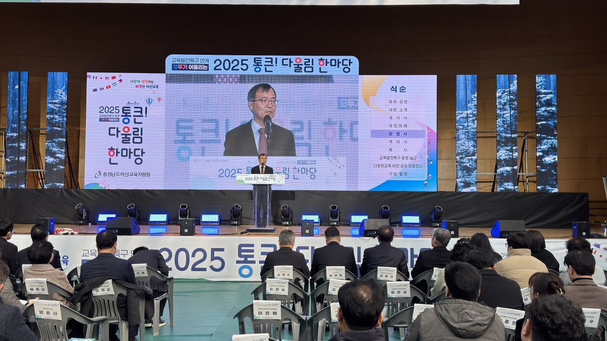 아산교육지원청, 교육발전특구 연계 모두가 어울리는 「 통큰 ! [PEDIEN] 아산교육지원청 은 12월 18일 선문대학교 아산캠퍼스 체육관에서 학생, 교원, 학부모, 지역 주민 등 교육공동체가 참여한 가운데, ‘2025 교육발전특구 연계 모두가 어울리는 통큰 다울림 한마당 ’을 성황리에 개최했다.「 통큰 !다울림 한마당 」 은 ‘다함께 어울려 소통하며 큰다 ’는 의미를 담은 행사로 아산 교육발전특구 사업의 핵심인 다문화교육 성과를 공유하고 확산하기 위해 마련된 교육공동체 축제이다.이번 행사는 이주배경학생과 비이주배경학생이 함께 어울리며 서로를 이해하고 소통하는 체험을 통해 공동 성장을 도모하는 데 목적을 두었다.이날 행사에는 초·중학생과 교원을 비롯해 학교 및 기관 관계자 등 800 여 명이 참여해 다문화교육의 가치와 교육발전특구 사업의 성과를 함께 나눴다.학생 참여 공연과 공동체 프로그램, 교육 성과 전시와 체험 활동이 어우러지며 학교 현장에서 실천되고 있는 다문화교육 사례를 자연스럽게 공유하는 시간이 됐다.또한, 교육발전특구 사업에 참여한 학교와 기관의 교육 산출물이 전시됐으며, 다문화교육 관련 교육 자료와 콘텐츠 소개, 다양한 체험 부스 운영을 통해 참여 학생들은 다문화 감수성과 공동체 의식을 직접 체험하며 이해의 폭을 넓혔다.한편, 선문대학교 아산캠퍼스 스포츠과학관에서는 초·중·고 교원을 대상으로 ‘다문화교육 전문가 특강 ’이 진행됐으며, 특강에는 전 안산원곡초등학교 안복현 교장이 강사로 참여해 이주배경학생과 비이주배경학생을 위한 다문화교육 실천 방안을 사례 중심으로 제시했다.신세균 교육장은 “다문화교육은 특정 학생을 위한 지원이 아니라 모든 학생이 서로를 이해하며 함께 성장하는 교육으로 확장하는 출발점 ”이라며, “아산 교육발전특구는 학생 한 명 한 명의 배경을 존중하고 학생 간의 차이를 배움과 성장의 자산으로 키워가는 데 중점을 두고 있다 ”라고 말했다.이어 “학교와 지역사회, 교육기관이 함께 만들어 가는 이러한 만남과 경험이 학생들의 삶과 배움으로 이어질 수 있도록 교육발전특구를 중심으로 현장 지원을 더욱 강화하겠다 ”라고 덧붙였다. -