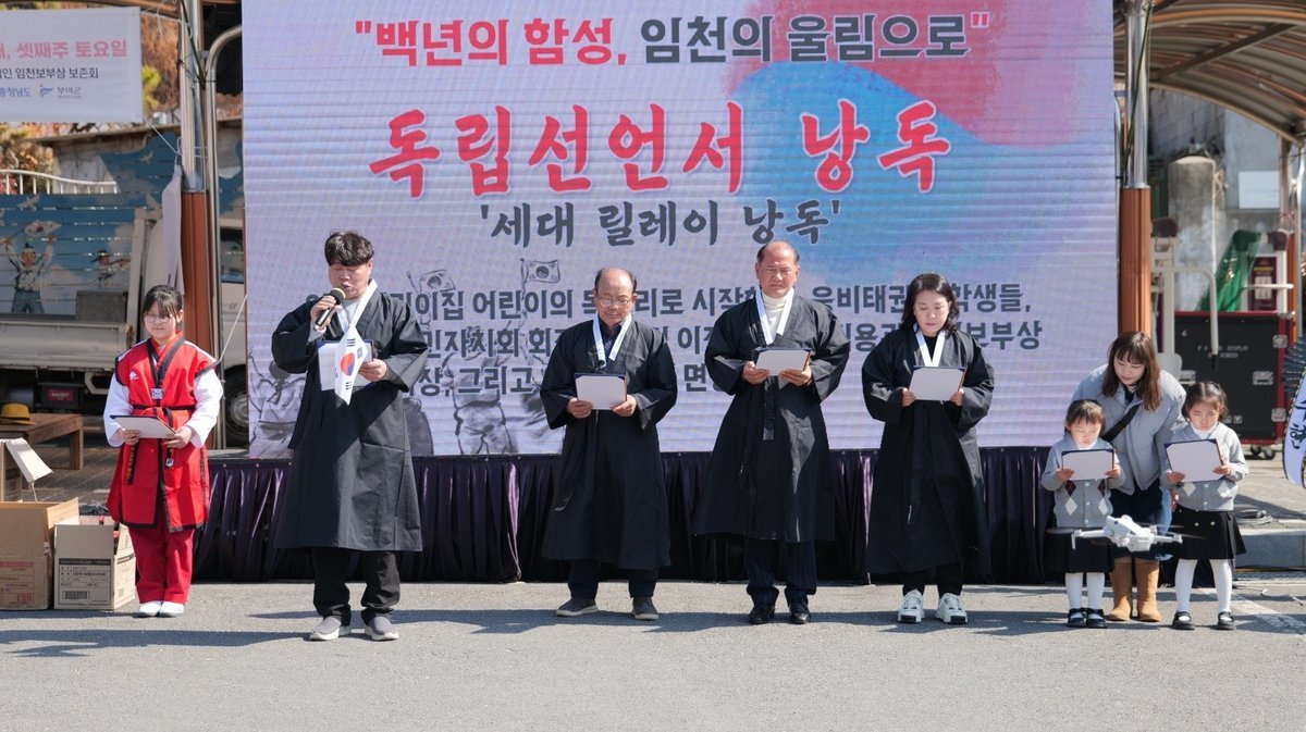 "백 년을 이어온 함성, 임천의 울림으로" (부여군 제공) [PEDIEN] 충남최초독립만세운동추진위원회는 부여군 임천면 만세장터에서 ‘제2회 충남 최초 3.1만세운동 기념행사’를 개최했다고 6일 밝혔다.이번 행사는 1919년 3월 6일 유관순 열사의 제암리 만세운동보다 한 달여 앞서 충남 지역에서 가장 먼저 일어났던 ‘임천장 독립 만세운동’의 역사적 가치를 재조명하기 위해 마련됐다.임천면은 당시 충화면에서 발원한 군중들이 임천 주재소로 몰려가 일본 헌병의 총칼 앞에서도 “우리 땅에서 물러가라”고 외쳤던 용기 있는 역사를 간직한 곳이다.행사를 주관한 임천보부상보존회는 전통적인 ‘진충보국’정신을 계승하며 지역 주민들과 함께 자발적인 기념의 장을 완성했다.김용관 추진위원장은 “임천장 만세운동은 부여의 긍지이자 충남 독립운동의 자랑스러운 역사”며 “백 년 전 선조들의 뜨거운 용기를 잊지 않고 계승해 임천의 울림이 지속될 수 있도록 노력하겠다”고 전했다.임천면 군사리 주민 한 분은 “일본 헌병의 총칼 앞에서도 물러서지 않았던 선조들의 뜨거운 용기가 깃든 위대한 고장 임천에서 오늘 지역 주민들이 보여준 발걸음 하나하나가 바로 살아있는 역사가 될 것”이라며 “이번 행사가 임천의 긍지를 높이고 순국선열의 숭고한 애국애향 정신을 계승하는 소중한 계기가 되길 바란다”고 전했다. -