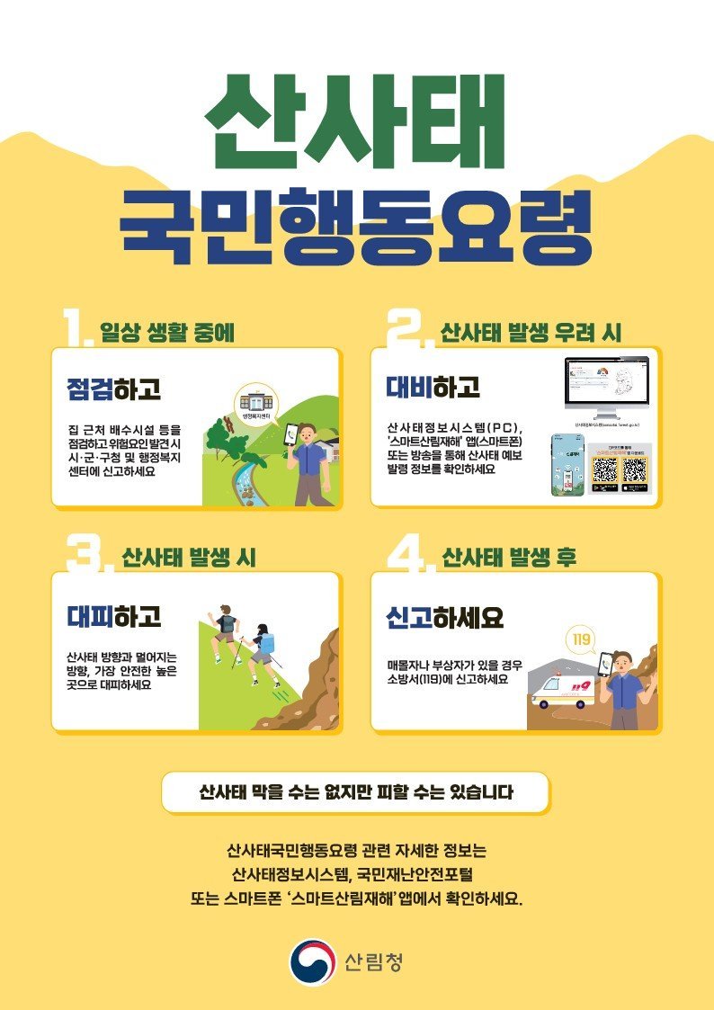 [PEDIEN] 홍성군은 해빙기를 맞아 얼어 있던 지반이 녹으면서 발생할 수 있는 산사태 위험에 선제적으로 대응하기 위해 오는 4월 10일까지 산사태취약지역 121개소를 대상으로 현장 점검을 실시한다.이번 점검은 정기 안전관리의 일환으로 취약지역과 대피소의 관리 실태를 종합적으로 확인하기 위해 추진되며 군은 산사태 업무 담당자와 민간 전문가, 산림재난대응단 등 총 46명으로 점검반을 구성해 현지 확인과 육안 검사를 진행한다.주요 점검 사항으로는 비탈면 유실 및 낙석 발생 여부, 예방시설물의 균열 훼손 상태, 배수시설 기능 유지 실태 등이다.이와 함께 산사태취약지역과 대피소의 관리 상태, 연락체계 구축 현황, 사방지 내 행위제한사항 위반 여부도 함께 점검한다.아울러 산사태취약지역 내 거주민과 인근 주민을 대상으로 산사태 국민 행동 요령을 홍보해 비상 상황 발생 시 신속한 대피가 이루어질 수 있도록 할 계획이다.점검 결과 경미한 사항은 현장에서 즉시 조치하고 산사태 발생 우려가 높은 구간은 정밀점검을 거쳐 보수 보강 등 필요한 조치를 순차적으로 추진한다.이선경 산림녹지과장은 “해빙기에는 지반이 약해지면서 산사태 위험이 높아질 수 있다”며 “철저한 점검과 예방 활동으로 군민의 생명과 재산 보호에 최선을 다하겠다”고 밝혔다.