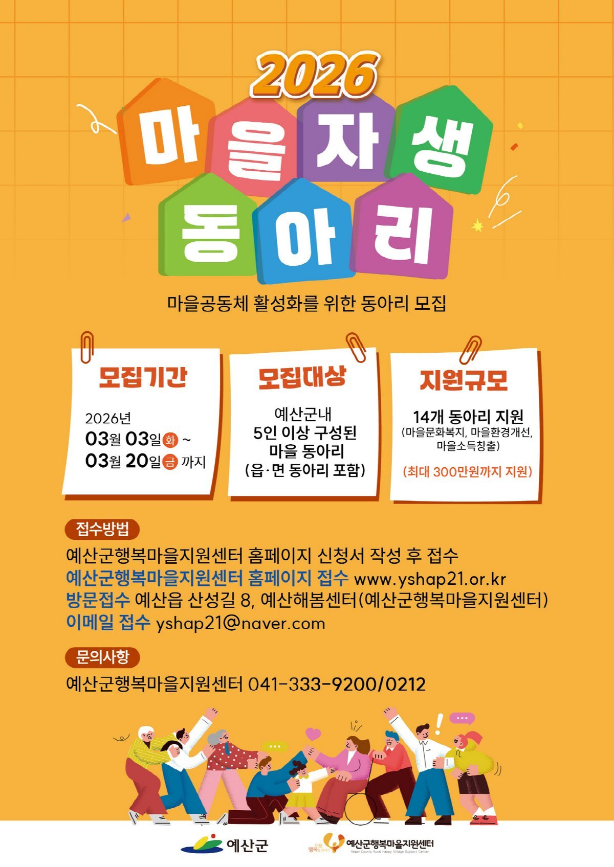 예산군행복마을지원센터, 2026년 마을자생동아리 모집 (예산군 제공)