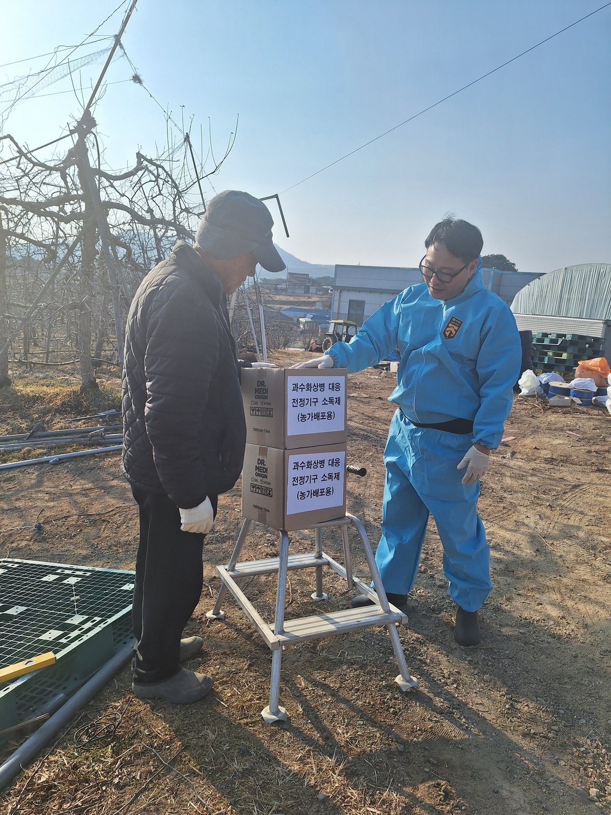 홍성군, '봄'엔 과수화상병 예방 방제가 필수 (홍성군 제공) [PEDIEN] 홍성군농업기술센터는 사과, 배 재배농가에 치명적인 피해를 입히는 과수화상병 예방 방제요령을 홍보하며 관련농가가 방제에 적극적으로 참여해 줄 것을 당부했다.사과, 배 나무의 꽃이 피기 전 시기는 과수화상병 방제의 가장 중요한 시기로 개화 전 방제약제로 등록된 석회보르도액 등을 반드시 살포해야 된다.사과나무는 꽃눈이 트고 녹색 잎이 펴지기 직전, 배나무는 발아기에 갈색 비늘잎이 떨어지기 시작할 쯤이 살포 적기이며 또 이 시기 약제 살포만큼 중요한 것이 과수원 내 청결 유지와 작업자 위생관리이다.외부에서 유입되는 오염물질 하나가 과수원 전체를 위협할 수 있기에 방문자 출입 시 철저히 소독하고 전정가위나 톱 등 작업도구 또한 마찬가지이다.군 관계자는 “과수화상병은 적기 방제와 위생 관리로 충분히 예방이 가능하다”며 “개화 전에 과수화상병 1차 방제약제 보르도액을 적기에 살포해 달라”고 말했다.한편 홍성군농업기술센터는 지난 3일까지 과수화상병 및 돌발해충 방제약제, 과원 관리일지, 전정기구 소독약제를 과수농가에 배포한 바 있다. -