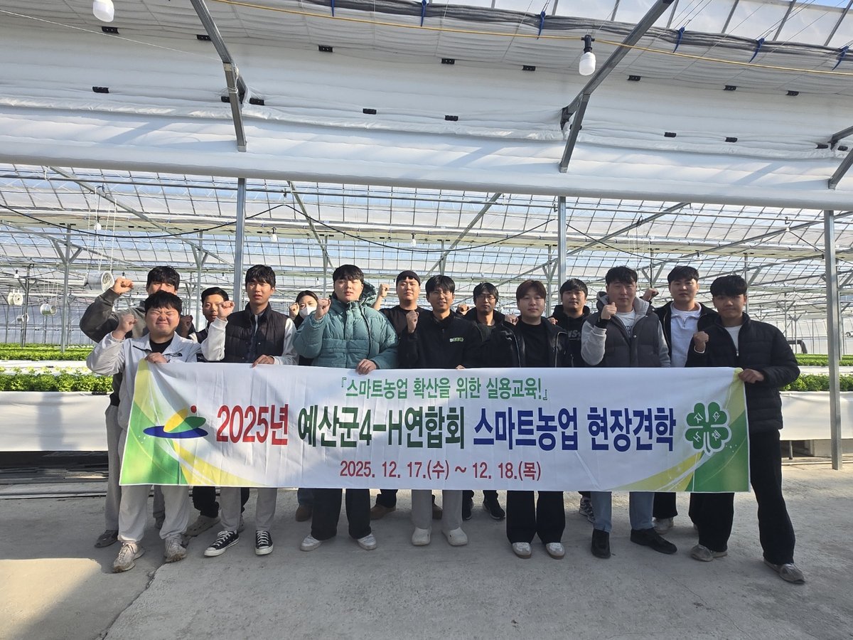 예산군 4-H연합회, 스마트농업 실용교육 확산 현장견학 실시 (예산군 제공) [PEDIEN] 예산군 4-H연합회가 스마트농업 실용교육 확산을 위해 지난 17일부터 18일까지 1박 2일간 현장견학을 진행했다. 회원 20여 명이 참여하여 전라북도 완주·김제와 충남 공주 일원의 스마트팜을 방문, 미래 농업을 위한 역량 강화에 나섰다.이번 견학은 스마트농업에 대한 이해를 높이고, 실제 스마트팜 운영 사례를 체험하여 청년 농업인들의 스마트농업 활용 역량을 강화하는 데 목적을 두었다. 변화하는 농업 환경에 능동적으로 대처할 수 있도록 돕는다는 취지다.첫째 날에는 완주군 농촌진흥청 국립원예특작과학원을 방문, 스마트농업 연구 현황과 미래 원예농업 기술에 대한 설명을 들었다. 이후 김제시 딸기 스마트팜 농가를 견학하며 스마트팜 시설 구성, 환경 제어 기술, 재배 관리 노하우 등을 공유했다.둘째 날에는 공주시 쌈채소 스마트팜 농가를 방문하여 스마트팜을 활용한 쌈채소 재배 사례를 살펴봤다. 실제 농가 운영 과정에서의 어려움과 해결 방안에 대해 의견을 나누는 등 현장 중심의 교육이 이루어졌다.김경태 4-H연합회장은 이번 현장견학을 통해 회원들이 스마트농업에 대한 이해를 높이고 현장에 적용할 수 있는 기술을 습득하는 계기가 되었다고 밝혔다. 앞으로도 청년농업인 육성을 위한 다양한 교육과 활동을 지속적으로 추진할 계획이라고 덧붙였다. -