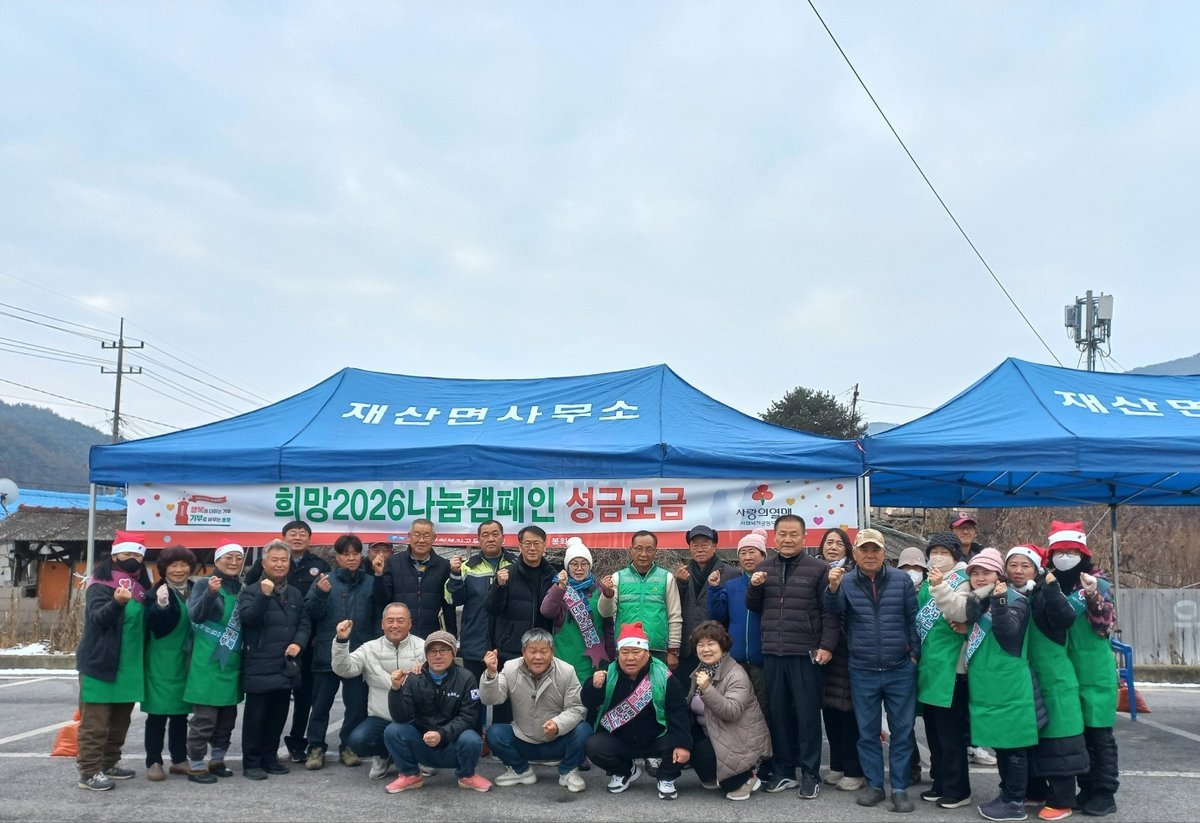 재산면 “희망2026 나눔캠페인”현장 성금 모금 전개 (봉화군 제공) [PEDIEN] 봉화군 재산면에서 '희망2026 나눔캠페인'이 성황리에 개최되어 추운 겨울을 녹이는 따뜻한 온정을 전했다. 지난 16일 면사무소 주차장에서 진행된 현장 성금 모금에는 각 기관, 사회단체, 주민들이 적극적으로 참여했다.'행복을 더하는 기부, 기부로 바꾸는 내일'이라는 슬로건 아래 진행된 이번 캠페인에서는 총 1560만원의 성금이 모금되었다. 특히 새마을부녀회는 추운 날씨에도 불구하고 성금 모금에 동참하기 위해 방문한 기부자들에게 따뜻한 어묵과 차를 제공하며 나눔의 의미를 더했다.이번 캠페인을 통해 모금된 성금은 내년 1월 31일까지 진행되는 '희망2026 나눔캠페인'을 통해 관내 복지 사각지대 해소 및 취약계층 지원에 사용될 예정이다. 구체적으로는 생계비, 의료비, 난방비 등으로 지원될 계획이다.오성대 재산면장은 어려운 경제 여건 속에서도 따뜻한 마음을 모아준 모든 분들께 감사의 인사를 전했다. 또한, 서로를 보듬고 소외되는 이웃이 없는지 촘촘하게 살펴 더불어 살아가는 지역사회를 만들어가겠다고 밝혔다. -