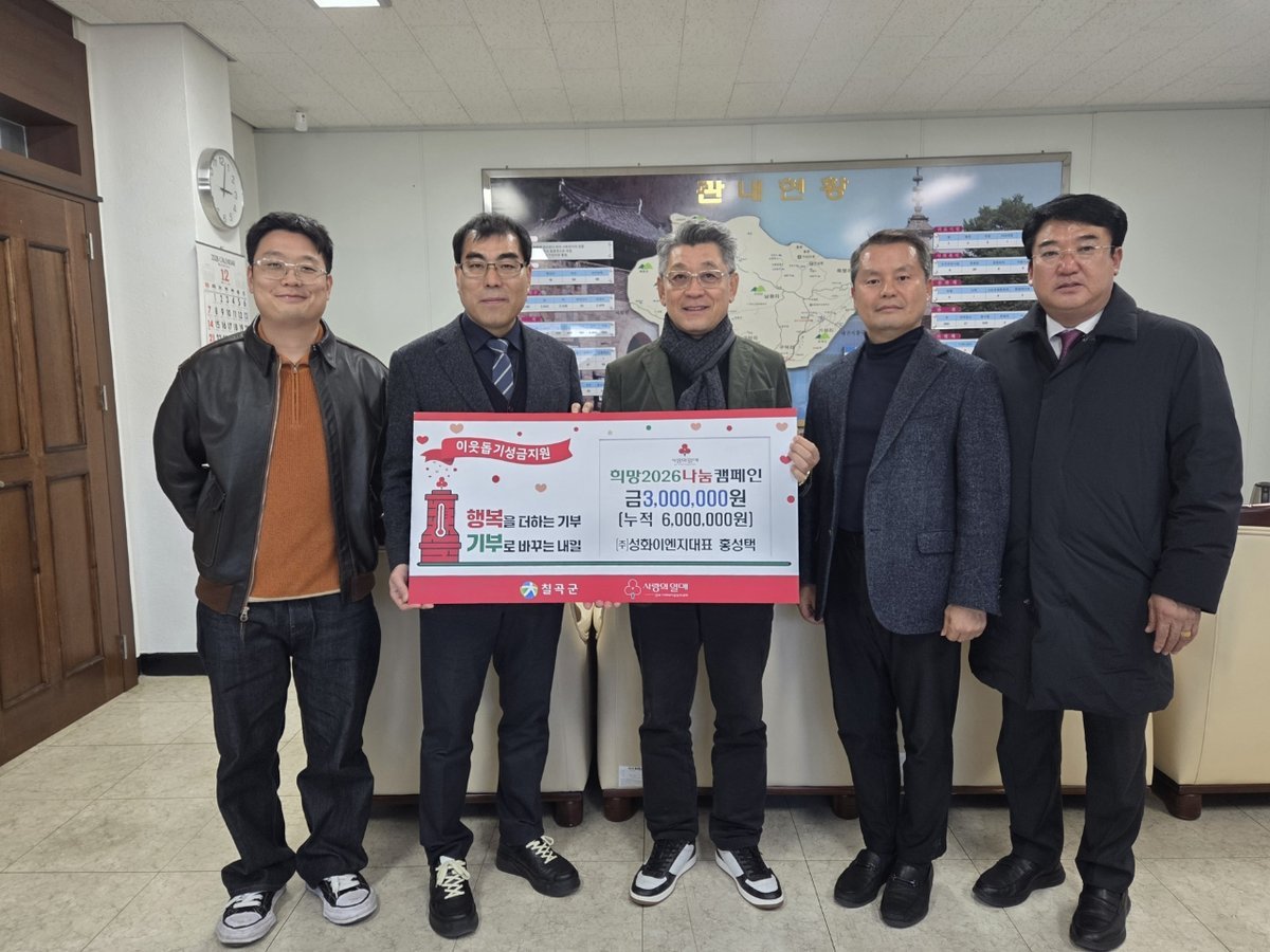 칠곡군 동명면, ㈜성화이엔지 및 ㈜보명기술단 성금 기탁 (칠곡군 제공) [PEDIEN] 칠곡군 동명면에 위치한 ㈜성화이엔지와 ㈜보명기술단이 희망2026 나눔캠페인에 동참하며 따뜻한 나눔을 실천했다.㈜성화이엔지는 지난 17일, 희망2026 나눔캠페인 성금 모금에 300만원을 기탁하며 지역 사회에 온정을 더했다. 특히 ㈜성화이엔지는 지난해에 이어 올해도 기부에 참여하며 나눔 문화 확산에 앞장서고 있다.㈜성화이엔지는 매년 어려운 이웃을 위한 다양한 사회공헌 활동을 꾸준히 실천하며 지역 사회의 귀감이 되고 있다. ㈜보명기술단 역시 지역 사회 나눔 확산에 뜻을 함께하며 성금 100만원을 동명면에 기탁하여 훈훈함을 더했다.동명면장은 변함없는 나눔을 실천해 주는 기업들에 감사를 표하며, 기탁된 성금은 어려움을 겪는 취약 계층 가구에 사회복지공동모금회를 통해 소중히 전달될 예정이라고 밝혔다.이번 성금 기탁은 겨울철 어려움을 겪는 이웃들에게 따뜻한 희망과 용기를 전달하는 데 큰 힘이 될 것으로 기대된다. -
