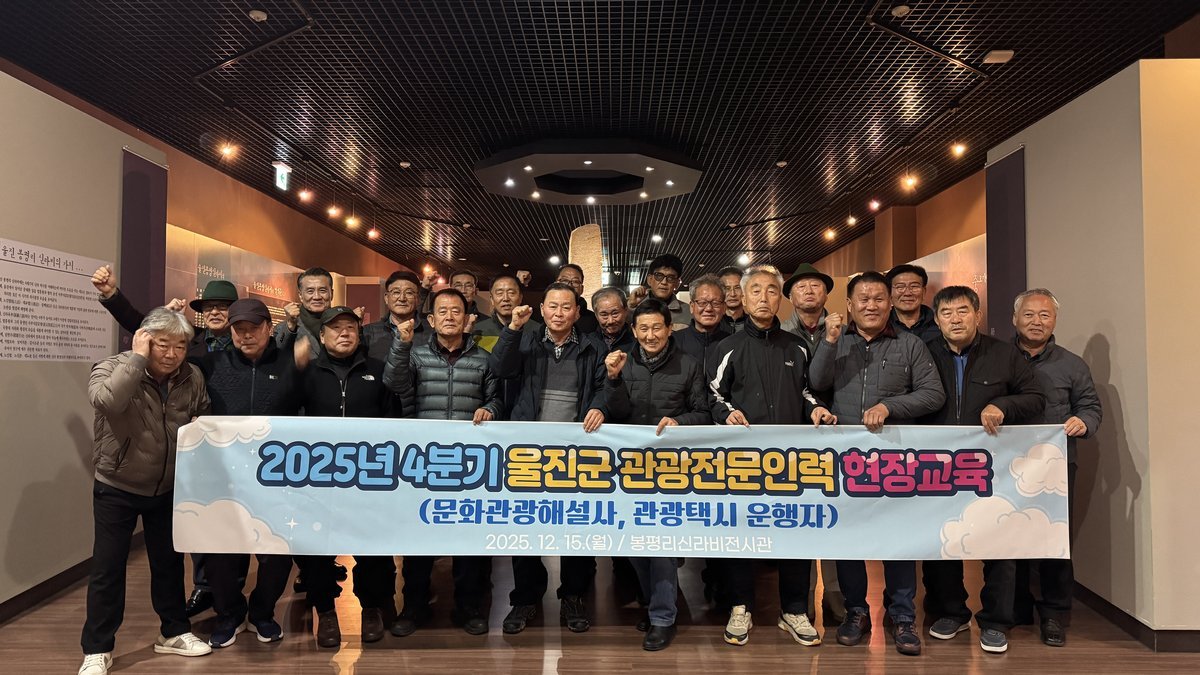 울진군, 관광전문인력 대상 정기교육 실시 (울진군 제공) [PEDIEN] 울진군이 관광 전문 인력의 역량 강화를 위해 지난 12월 15일 울진봉평리신라비전시관에서 특별한 교육을 진행했다. 이번 교육은 울진군 관광택시 운행자와 문화관광해설사를 대상으로, 지역의 대표 문화유산인 봉평리신라비에 대한 깊이 있는 이해를 돕고자 마련됐다.특히 이번 교육은 이론 강의에서 벗어나, 봉평리신라비전시관 현장에서 직접 실물을 관람하며 진행되었다는 점이 특징이다. 참가자들은 전시관장의 상세한 해설을 통해 봉평리신라비의 역사적 배경과 학술적 가치에 대해 심도 있게 학습하는 시간을 가졌다.단순한 정보 전달을 넘어, 실제 관광 현장에서 발생할 수 있는 질문들을 중심으로 질의응답 시간도 마련되었다. 이를 통해 참가자들은 봉평리신라비는 물론, 울진군의 주요 관광지에 대한 이해를 한층 더 높일 수 있었다.울진군은 이번 교육을 통해 관광 전문 인력들이 울진의 문화유산에 대한 깊이 있는 지식을 습득하고, 이를 바탕으로 관광객들에게 더욱 풍성하고 정확한 해설을 제공할 수 있을 것으로 기대하고 있다.교육에 참여한 한 관광택시 운행자는 “이번 교육을 통해 울진의 관광 자원에 대한 새로운 시각을 갖게 되었다”며, “앞으로 관광객들에게 더욱 유익하고 흥미로운 정보를 제공할 수 있도록 노력하겠다”고 소감을 밝혔다.울진군 관계자는 “지속적인 관광 전문 인력 교육을 통해 울진 관광의 품질을 높이고, 관광 서비스 경쟁력을 강화해 나갈 계획”이라고 밝혔다. 울진군은 앞으로도 다양한 교육 프로그램을 개발하여 관광객들에게 더욱 만족스러운 경험을 선사할 수 있도록 노력할 예정이다. -