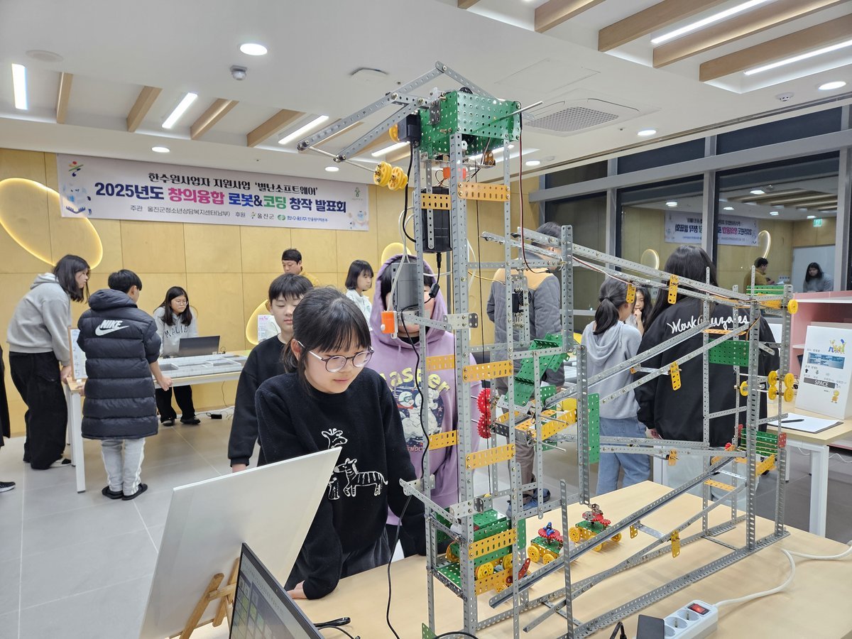 울진 청소년, 직접 만든 로봇·코딩 작품 선보여 (울진군 제공) [PEDIEN] 울진군 남부청소년방과후아카데미는 지난 12월 10일 4차 산업혁명 시대에 요구되는 창의적 역량을 강화하고 미래 과학기술 인재로 성장을 지원하기 위해‘창의융합 로봇&코딩 창작발표회’를 개최했다.이번 창작발표회는 한울원자력 사업자 지원사업으로 운영된 창의융합 프로그램의 일환으로, 청소년들이 로봇 제작과 코딩 프로그래밍을 통해 창의력과 융합 사고를 기르는 활동을 지속적으로 진행해 온 성과를 공유하고 발표하는 자리로 마련됐다.특히 청소년이 직접 운영하는 체험부스 방식으로 진행되어 학생들이 로봇 시연, 코딩 미션수행 등을 직접 체험하며 창의력·문제해결력·의사소통 능력을 높이는 기회의 장이 됐다.발표회에 참여한 한 청소년은“코딩이 어렵게만 느껴졌는데 재미있고 더 배우고 싶어졌다”라고 소감을 전했다.울진군 관계자는“로봇과 코딩을 직접 설계하고 발표하는 경험이 청소년들의 창의성과 문제해결능력을 키우는 데 의미 있는 계기가 되길 바란다”라고 말했다. -