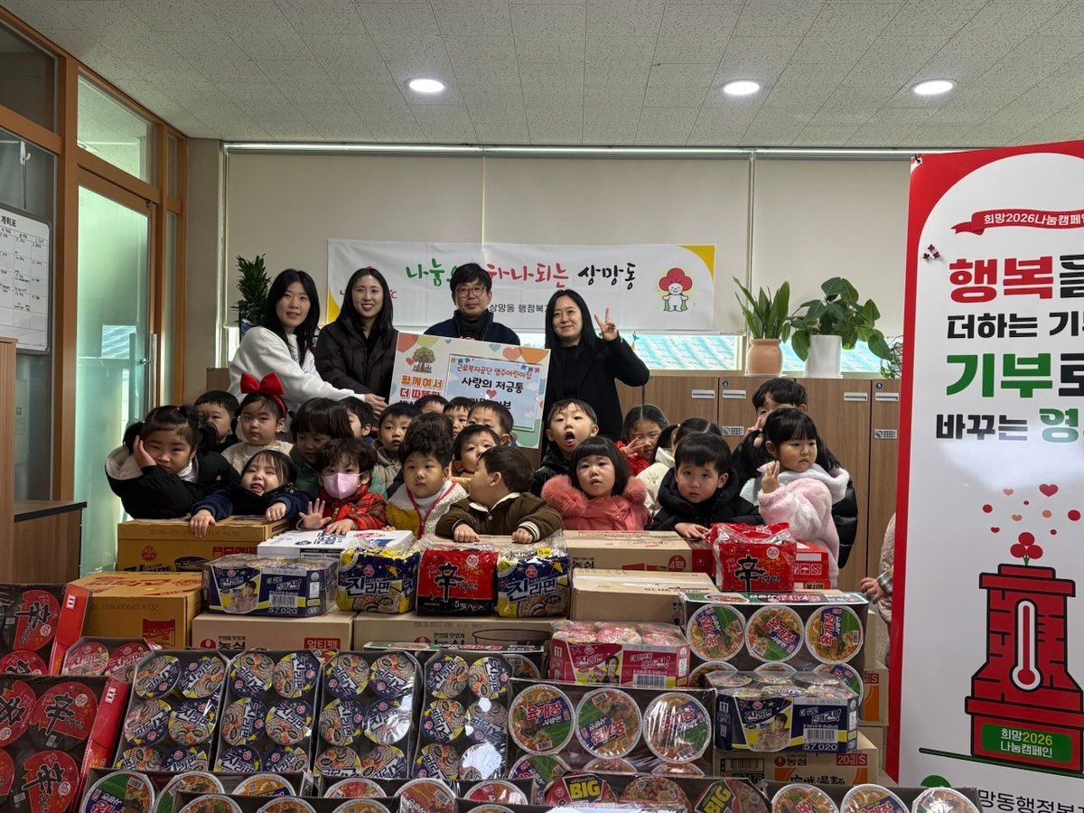 근로복지공단 영주어린이집, 사랑의 저금통과 라면 기부 (영주시 제공) [PEDIEN] 근로복지공단 영주어린이집이 아이들과 교직원들이 함께 모은 정성을 담아 지역사회에 따뜻한 온정을 전했다.영주어린이집은 지난 19일, 아이들이 직접 모은 사랑의 저금통과 라면을 상망동행정복지센터에 기탁하며 나눔을 실천했다. 이번 기부는 아이들이 가정에서 직접 참여하는 ‘사랑의 동전 모으기’와 ‘함께 라면 나누기’ 캠페인을 통해 마련되어 더욱 의미가 깊다.아이들은 작은 손으로 저금통을 채우고, 라면을 직접 고르며 나눔의 기쁨을 몸소 체험했다. 이렇게 모인 성금은 총 16만 원, 라면은 25박스에 달한다.김수란 영주어린이집 원장은 “아이들과 학부모님들의 적극적인 참여 덕분에 따뜻한 나눔을 실천할 수 있었다”며 감사의 마음을 전했다. 이어 “아이들이 나눔을 통해 타인을 배려하고 사랑을 실천하는 사람으로 성장하길 바란다”고 덧붙였다. 영주어린이집은 앞으로도 지역사회와 함께하는 다양한 교육 활동을 지속적으로 펼쳐나갈 계획이다.하천수 상망동장은 “영주어린이집의 따뜻한 마음에 깊이 감사드린다”며, “아이들의 소중한 마음이 담긴 성금과 라면은 도움이 필요한 가정에 잘 전달하겠다”고 밝혔다.한편, 영주어린이집은 이웃돕기 성금 및 물품 기탁 뿐만 아니라 우유팩 교환 캠페인 등 지역사회를 위한 다양한 나눔 활동에 꾸준히 참여하며 사회적 책임을 다하고 있다. -