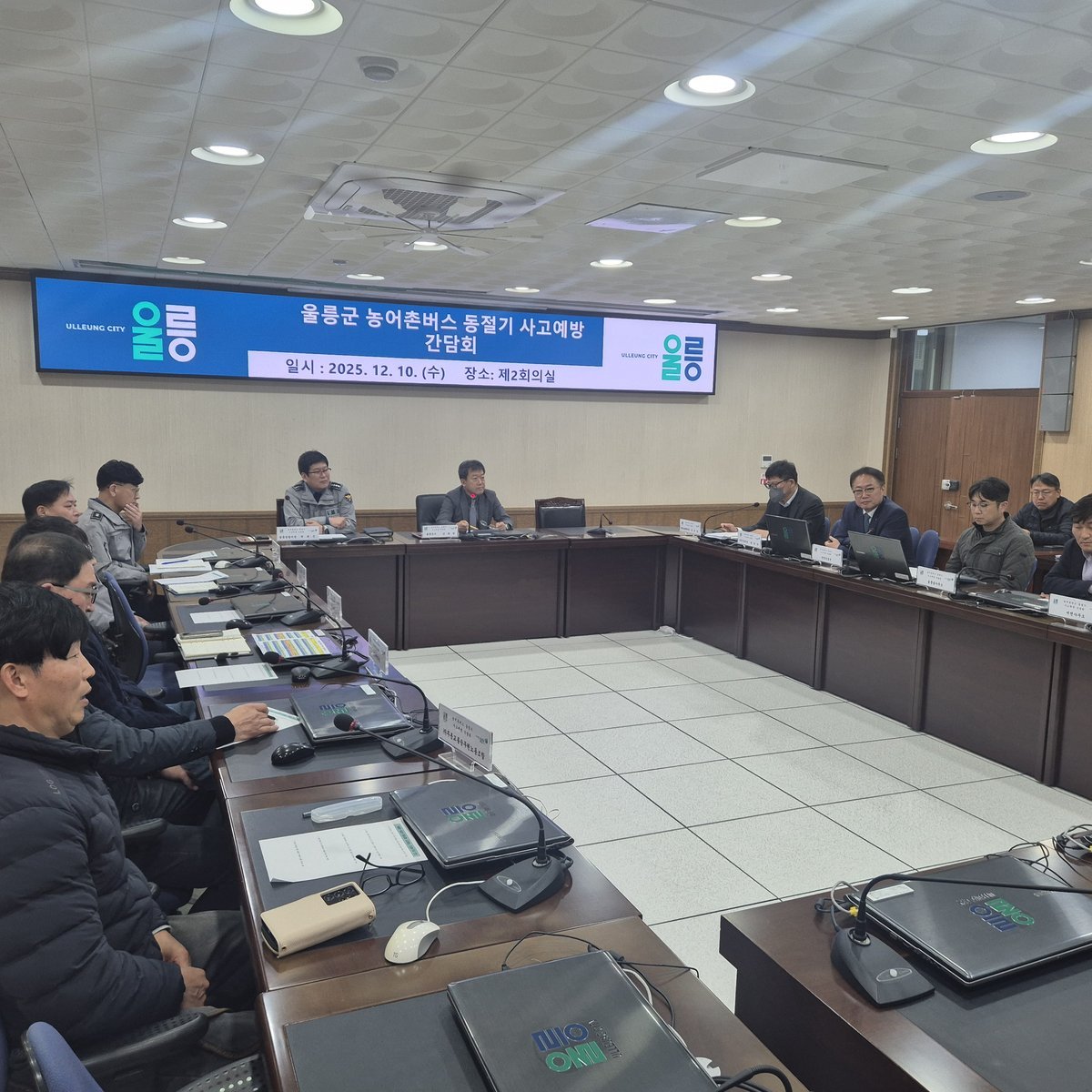 울릉군 농어촌버스 동절기 대중교통 사고예방 간담회 개최 (울릉군 제공) [PEDIEN] 울릉군이 겨울철 기상 악화로 인한 농어촌버스 교통사고 예방을 위해 발 벗고 나섰다.지난 10일, 울릉군청에서 남한권 군수를 비롯해 최대근 울릉경찰서장, 읍면장, 운수업체 관계자 등이 참석한 가운데 동절기 대중교통 사고 예방 간담회가 개최됐다.이번 간담회에서는 겨울철 운행 장애 및 사고 발생 시 신속하게 대응할 수 있는 통합 연락망 구축 방안이 논의됐다. 또한, 대중교통 노선 중 취약 구간에 대한 제설 작업 우선순위를 정하는 등 실질적인 안전 대책 마련에 집중했다.운수업체 노동조합장은 안전 운행이 군민의 안전과 직결된다는 책임감을 강조하며, 철저한 안전 수칙 준수와 차량 점검에 적극 참여할 것을 다짐했다. 최대근 울릉경찰서장은 주요 결빙 지역 순찰 강화와 기상 악화 시 교통 통제 등 경찰 차원의 지원을 약속했다.남한권 군수는 대중교통의 안전하고 차질 없는 운행을 위해 제설 장비 지원 확대와 비상 연락 체계 구축 등 행정적 지원을 아끼지 않겠다고 밝혔다. 더불어 군민들에게도 기상 악화 시 대중교통 이용에 적극 협조해 줄 것을 당부했다.울릉군은 이번 간담회 결과를 바탕으로 동절기 농어촌버스 안전 관리 대책을 철저히 이행하고, 통합 신속 대응 연락망을 구축하여 군민들이 안심하고 이용할 수 있는 대중교통 환경을 조성해 나갈 계획이다. -