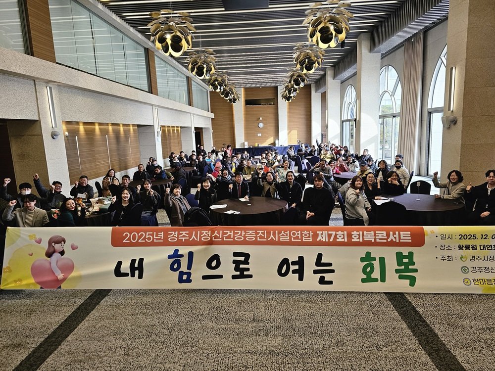 경주시, 제7회 회복콘서트‘내 힘으로 여는 회복’성료 (경주시 제공) [PEDIEN] 경주시정신건강증진시설연합은 8일 황룡원에서 ‘제7회 회복콘서트 - 내 힘으로 여는 회복’을 개최했다.이번 콘서트는 정신장애인이 단순 참여자가 아니라 프로그램 운영의 주체로 참여하며 회복 여정을 지역사회와 공유하고, 회복 중심의 정신건강 인식을 확산하기 위해 마련됐다.행사는 △유공자 표창 △경북정신건강사회복지사협회 강현정 부회장의 기조강연 △캘리그라피 작가 ‘앤’의 회복 수기 발표 등 다양한 프로그램으로 구성돼 참석자들의 큰 호응을 얻었다.진병철 경주시보건소장은 “정신건강은 일상의 중요한 기반으로, 지역사회가 함께 관심을 가져야 한다”며, “앞으로도 회복 친화적 환경을 만들기 위한 지원을 이어가겠다”고 말했다. -